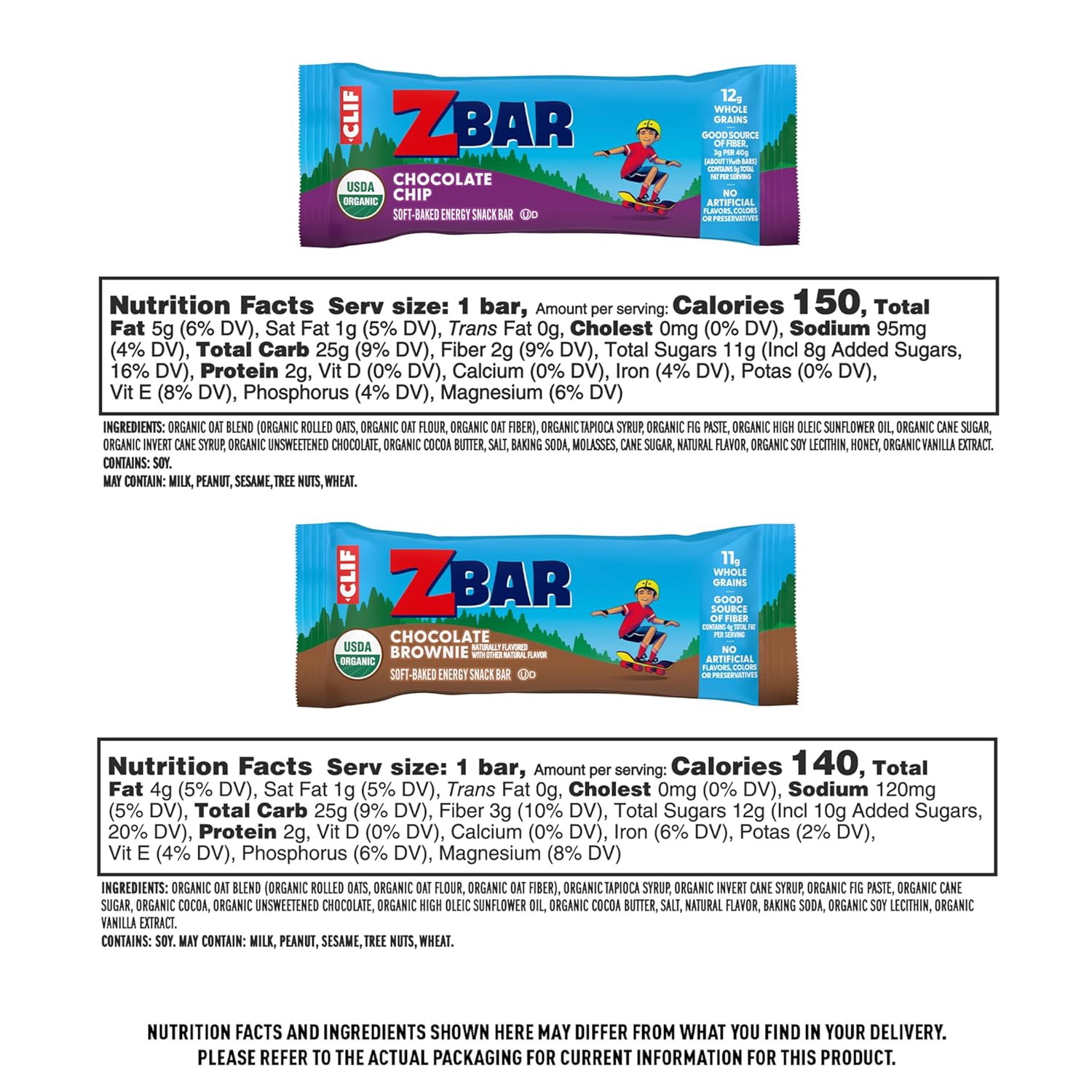 Zbar - Chocolate Chip and Chocolate Brownie - Variety Pack - Soft Baked Whole Grain Snack Bars - USDA Organic - Non-GMO - Plant-Based - 1.27 oz. (36 Count)