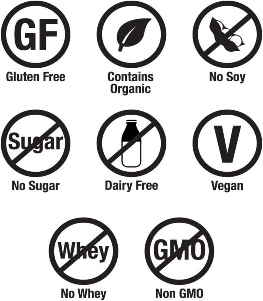 - 100% vegan and organic, non-GMO. They are also free of gluten, soy, sugar, dairy and whey