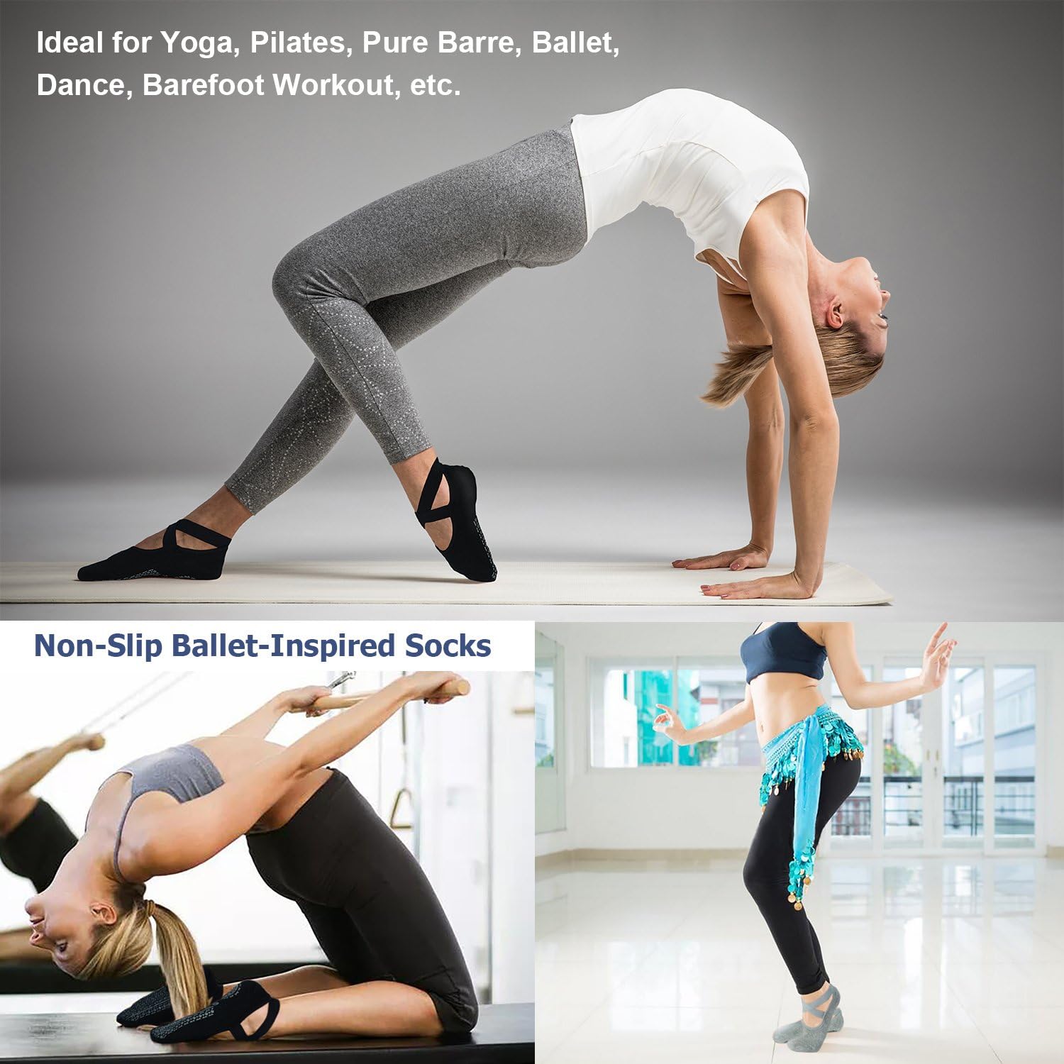 Ozaiic Yoga Socks for Women Non-Slip Grips & Straps, Ideal for Pilates, Pure Barre, Ballet, Dance, Barefoot Workout