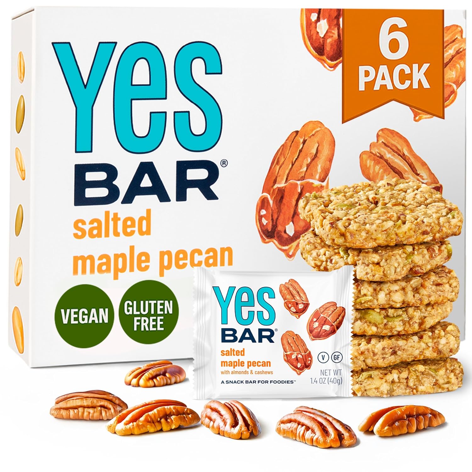 YES Bar – Salted Maple Pecan – Plant Based Protein, Decadent Snack Bar – Vegan, Paleo, Gluten Free, Dairy Free, Low Sugar, Healthy Snack, Breakfast, Low Carb, Keto Friendly (6 Count)