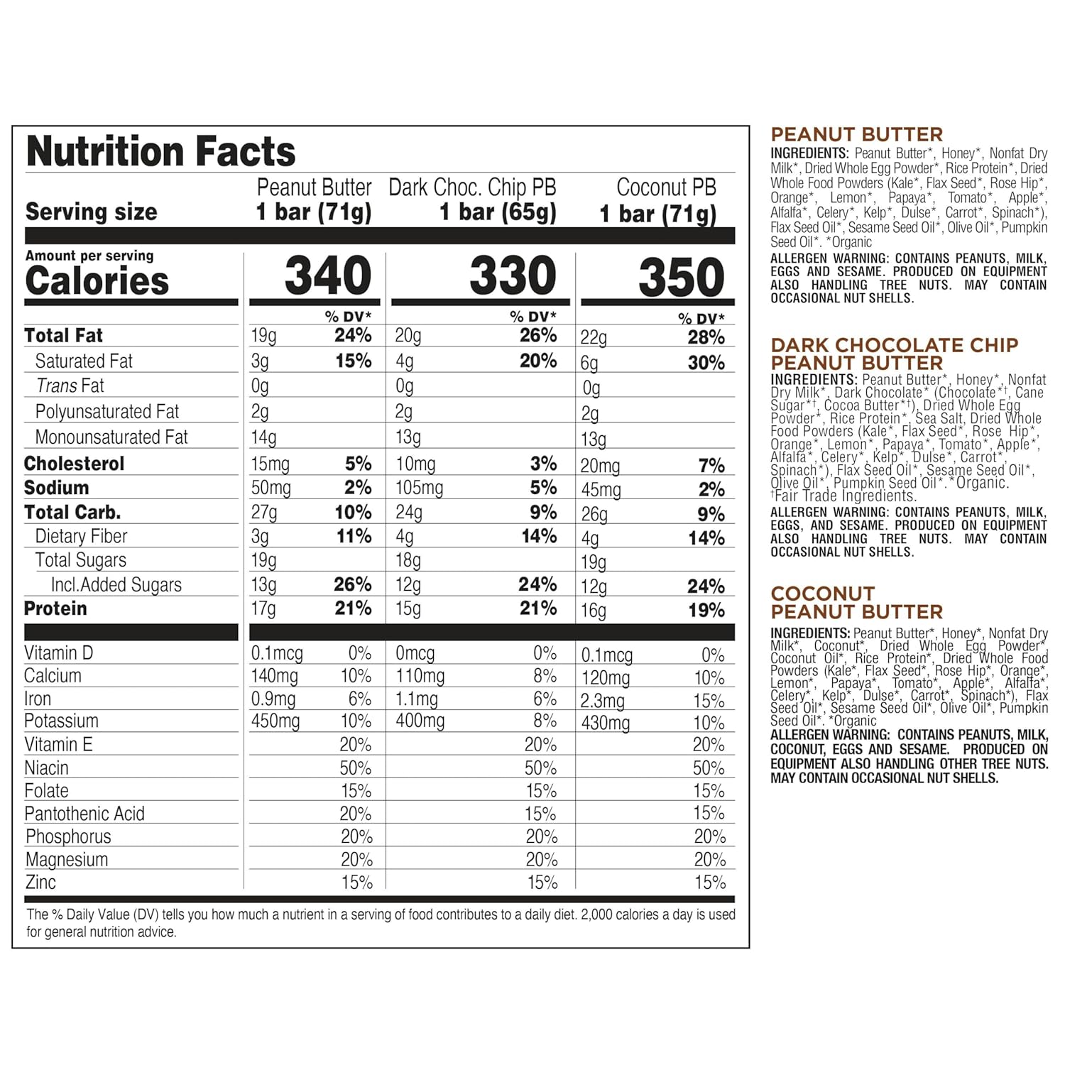 - SUPERFOOD: Superfoods like fruits, vegetables, seeds & oils are found in every bar to provide a convenient source of vitamins & minerals. Plus, we use whole food protein & never rely on whey or soy.