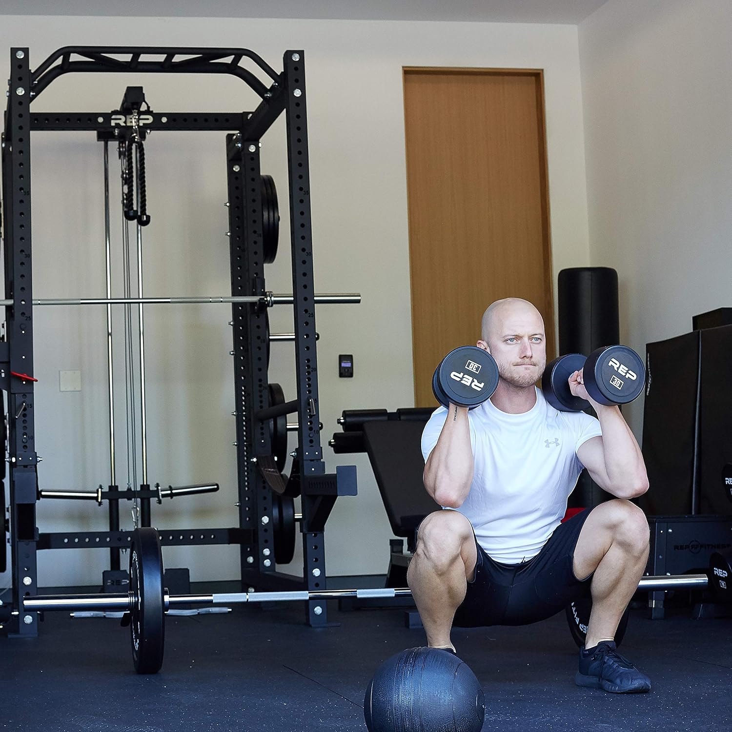 REP Fitness Urethane Coated Round Dumbbells, 5 to 100 lbs, Singles or Pairs, With or Without Rack, Steel Core, Rubber Encased, Chrome Handles, Professional Weights for Home Gym Strength Training
