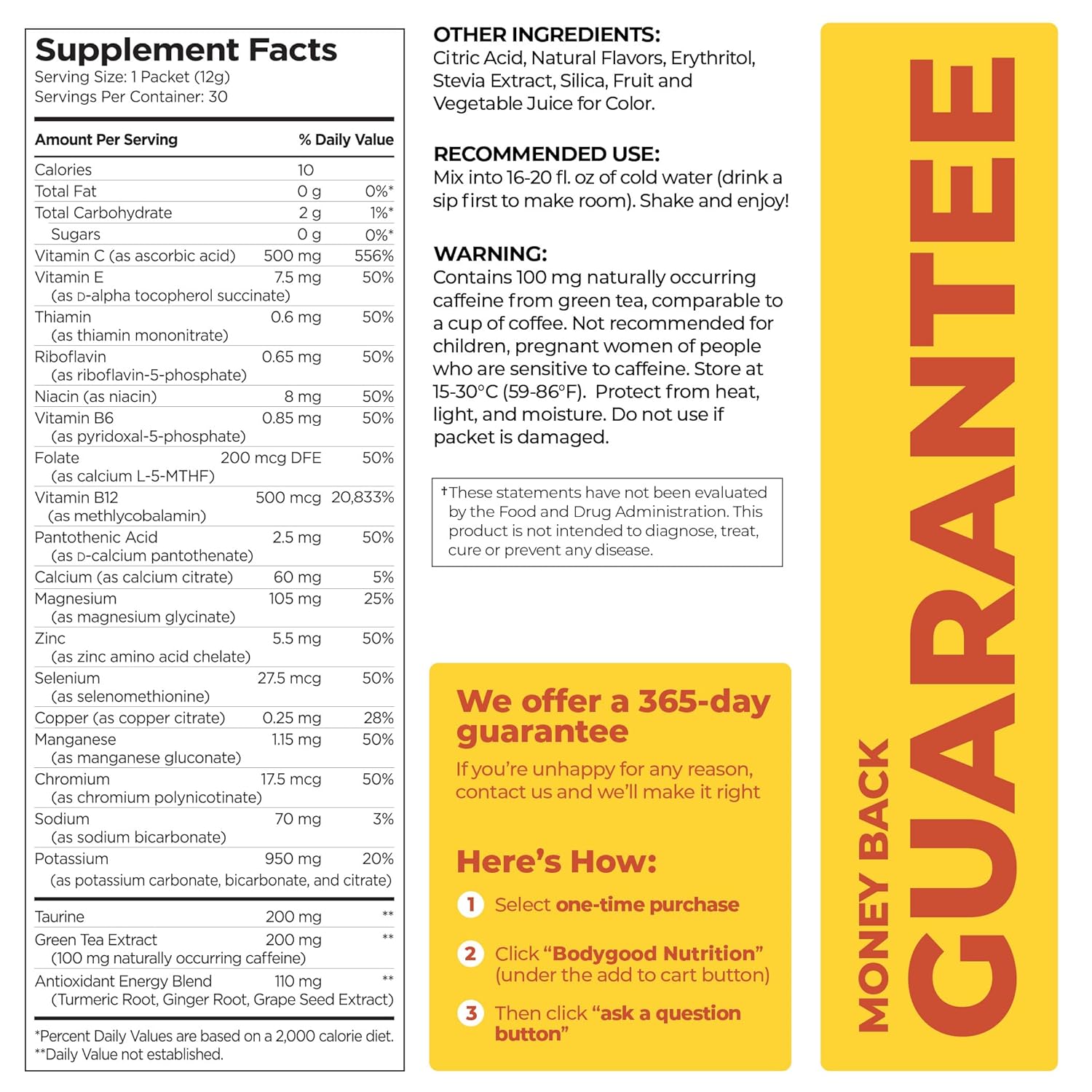 - 365-DAY GUARANTEE, HASSLE-FREE: Not satisfied? We’ve got you covered! Because we’re a grocery item, you can’t return directly to Amazon (because…rules.) Contact us directly and we’ll take care of you.