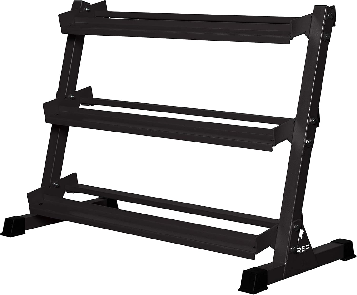 - WHAT’S INCLUDED: 5, 10, 15, 20, 25, 30, 35, 40, 45, 50 lb pairs of urethane coated dumbbells and a 3 tiered rack