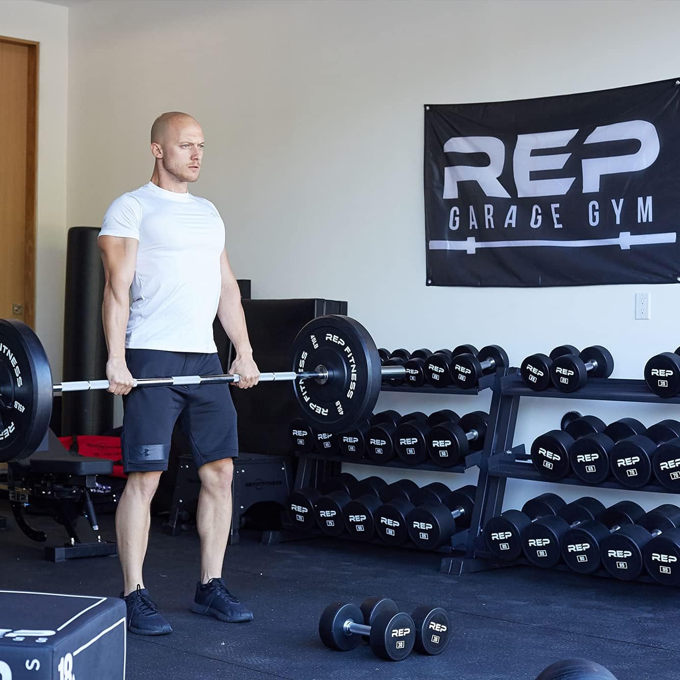 REP Fitness Urethane Coated Round Dumbbells, 5 to 100 lbs, Singles or Pairs, With or Without Rack, Steel Core, Rubber Encased, Chrome Handles, Professional Weights for Home Gym Strength Training