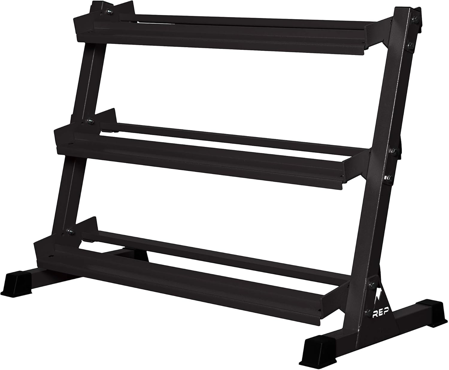 - What's Included: 5, 10, 15, 20, 25, 30, 35, 40, 45, 50, 55, 60, 65, 70, 75, 80, 85, 90, 95, 100 lb pairs of urethane coated dumbbells and two 3-tiered racks