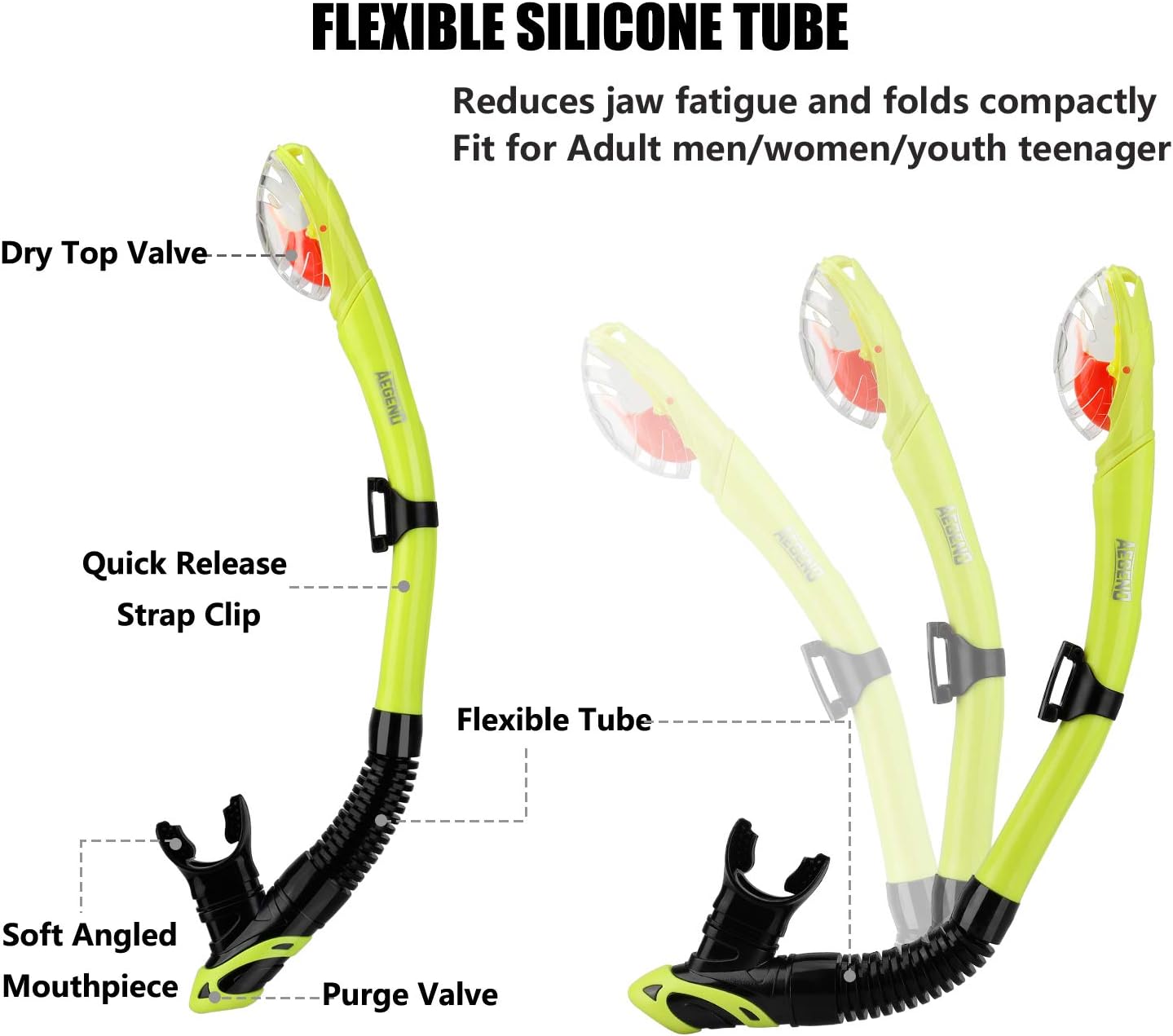 Aegend Dry Snorkel, Dive Mask Easy-Breath Free Diving Snorkel for Snorkeling Scuba Diving Freediving Swimming, with Top Dry Valve and Food-Grade Silicone Mouthpiece