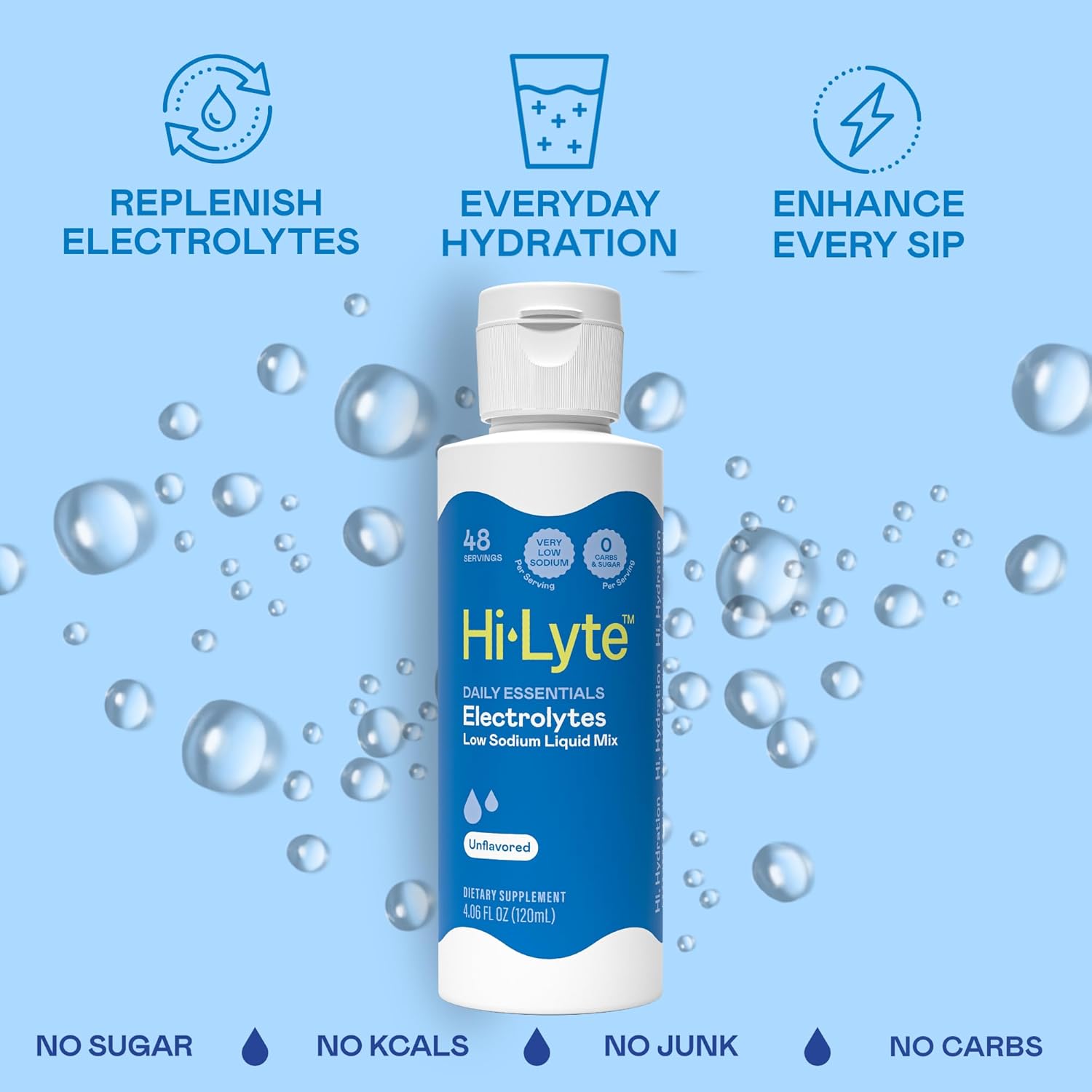 - LOW SODIUM CONCENTRATE β Tailored for individuals who either obtain sufficient sodium in their diet or need to manage their sodium intake. This concentrate promotes cellular-level bodily functions. If you engage in an hour or more of daily cardio, you may consider our Original Hi-Lyte Concentrate or Capsules.