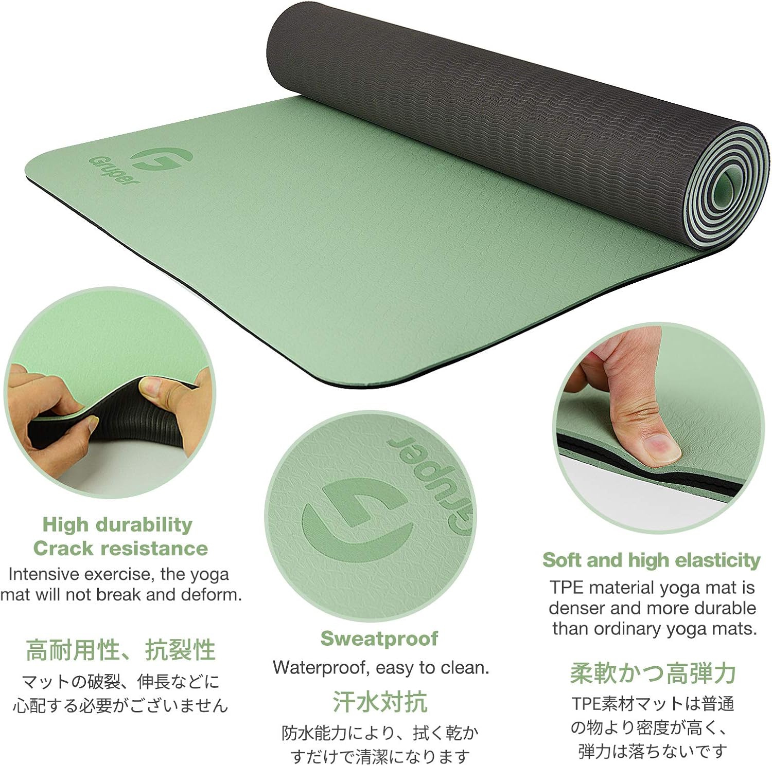 - NEW ECO FRIENDLY MATERIAL: The upgraded Gruper Yoga mat is made with premium friendly material. It costs more to make, but it is safer and more soft than traditional non-green PVC and EVA yoga mats.The exercise mats are suitable for many forms of Yoga, Pilates and fitness.
