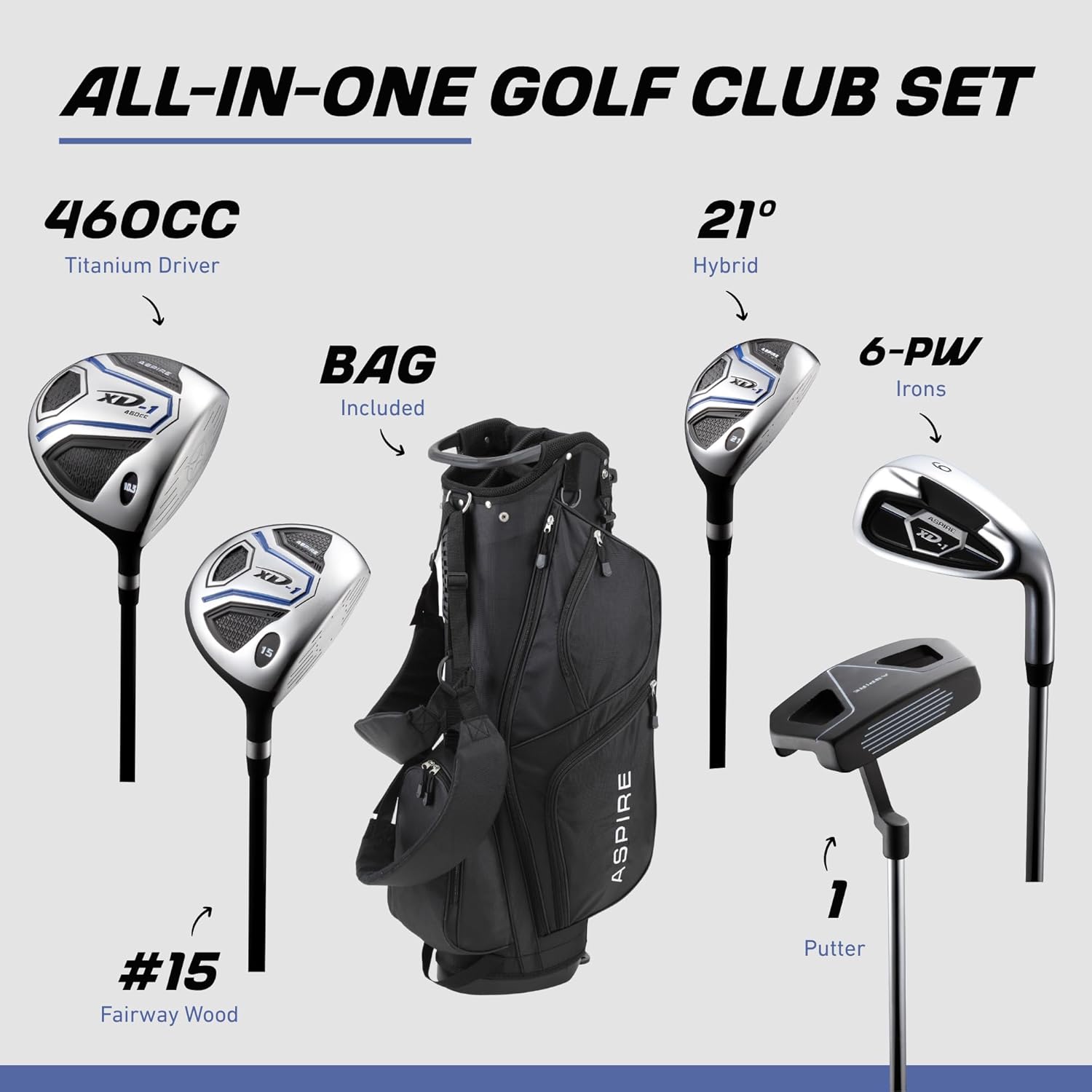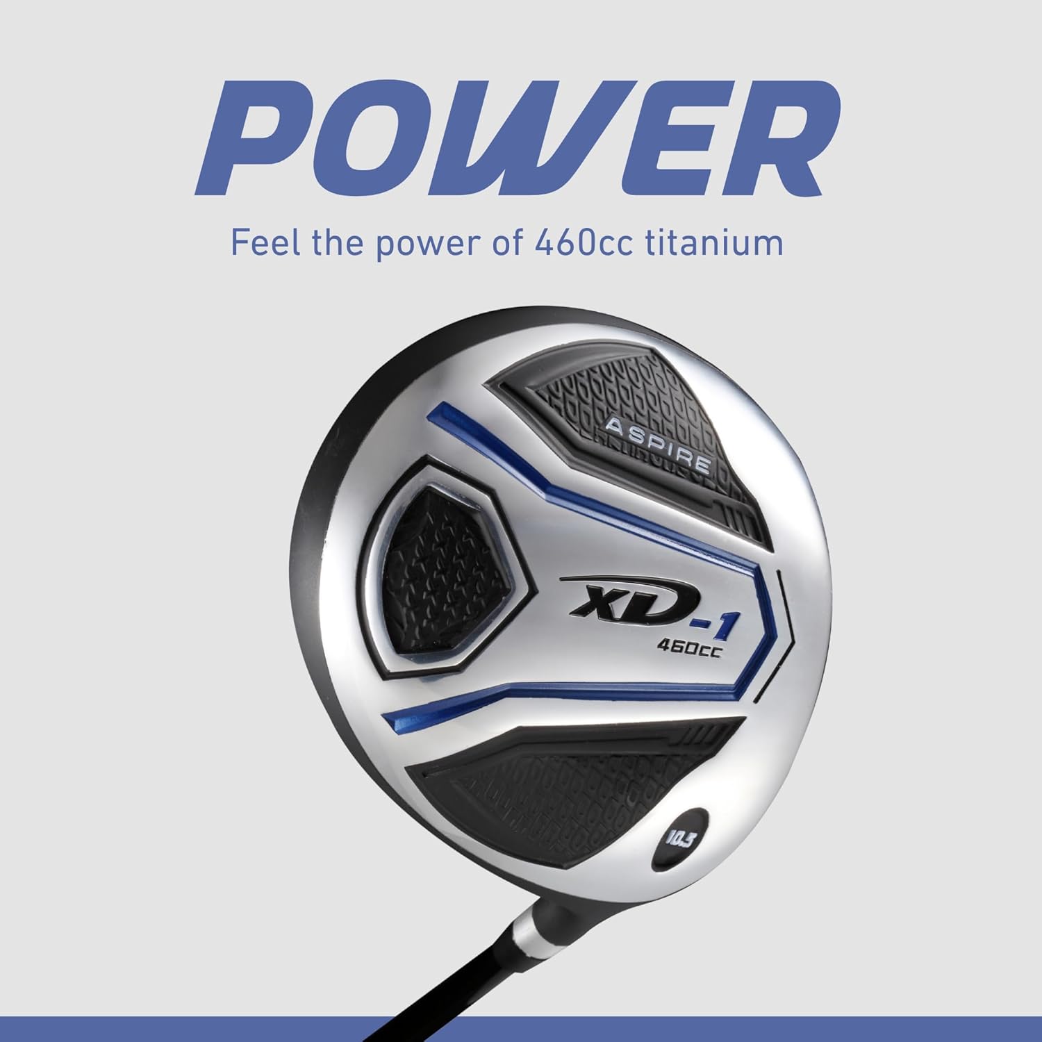 Aspire XD1 Complete Mens Golf Club Set, Includes Titanium Driver, S.S. Fairway, S.S. Hybrid, S.S. 6-PW Irons, Putter, Bag, 3 H/C's, Right & Left Handed Golf Clubs