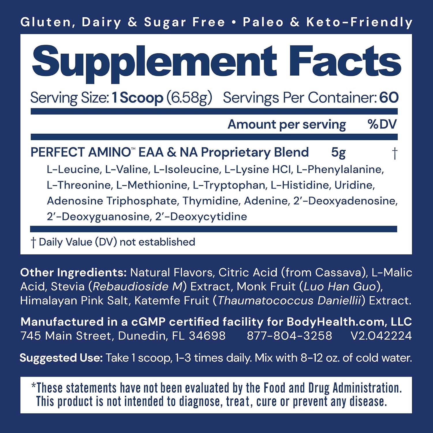 BodyHealth PerfectAmino Powder - BCAA and EAA Powder for Pre and Post Workout - Amino Acid Energy Drink for Men and Women to Support Lean Muscle and Recovery - Mixed Berry - 60 Servings
