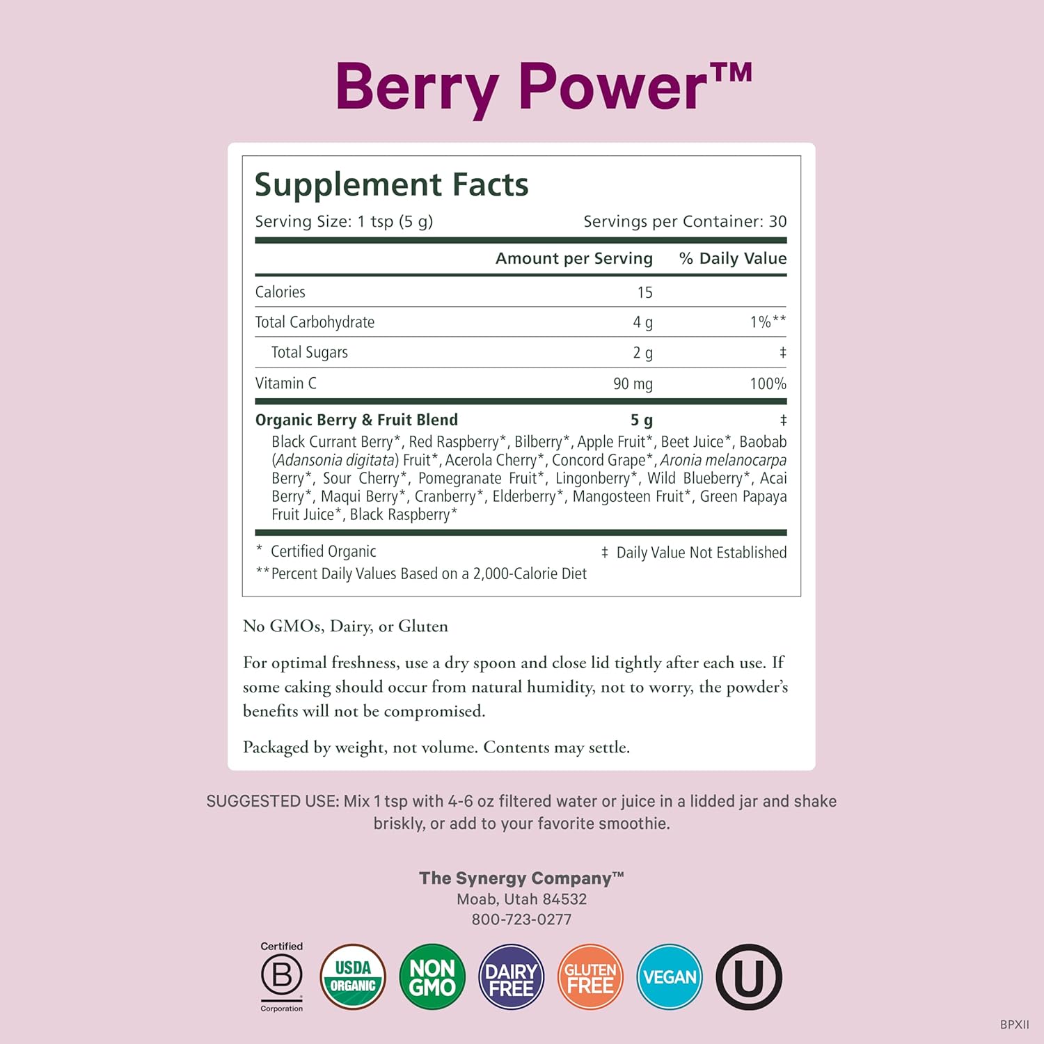 PURE SYNERGY Berry Power | Organic Berry and Fruit Powder | Antioxidant Supplement with Organic Acai, Camu Camu, and Wild Blueberry | for Healthy Aging, Immune, and Skin Support (5.3 oz Powder)