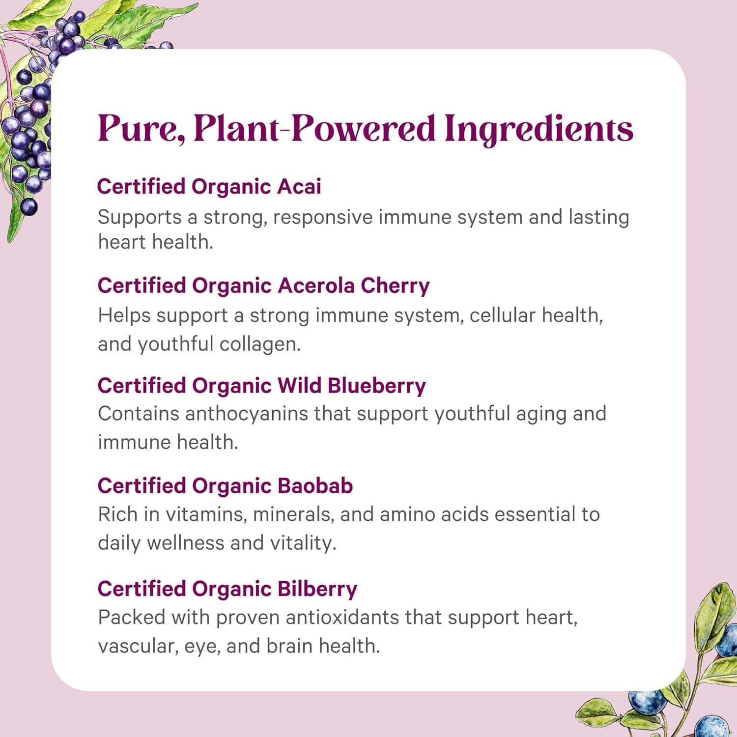 - SWEET VITALITY FOR IMMUNE & SKIN SUPPORT: Powerful superfruit antioxidants foster healthy aging and immune health; organic vitamin C and natural anthocyanins promote vibrant skin, eye, and heart health.