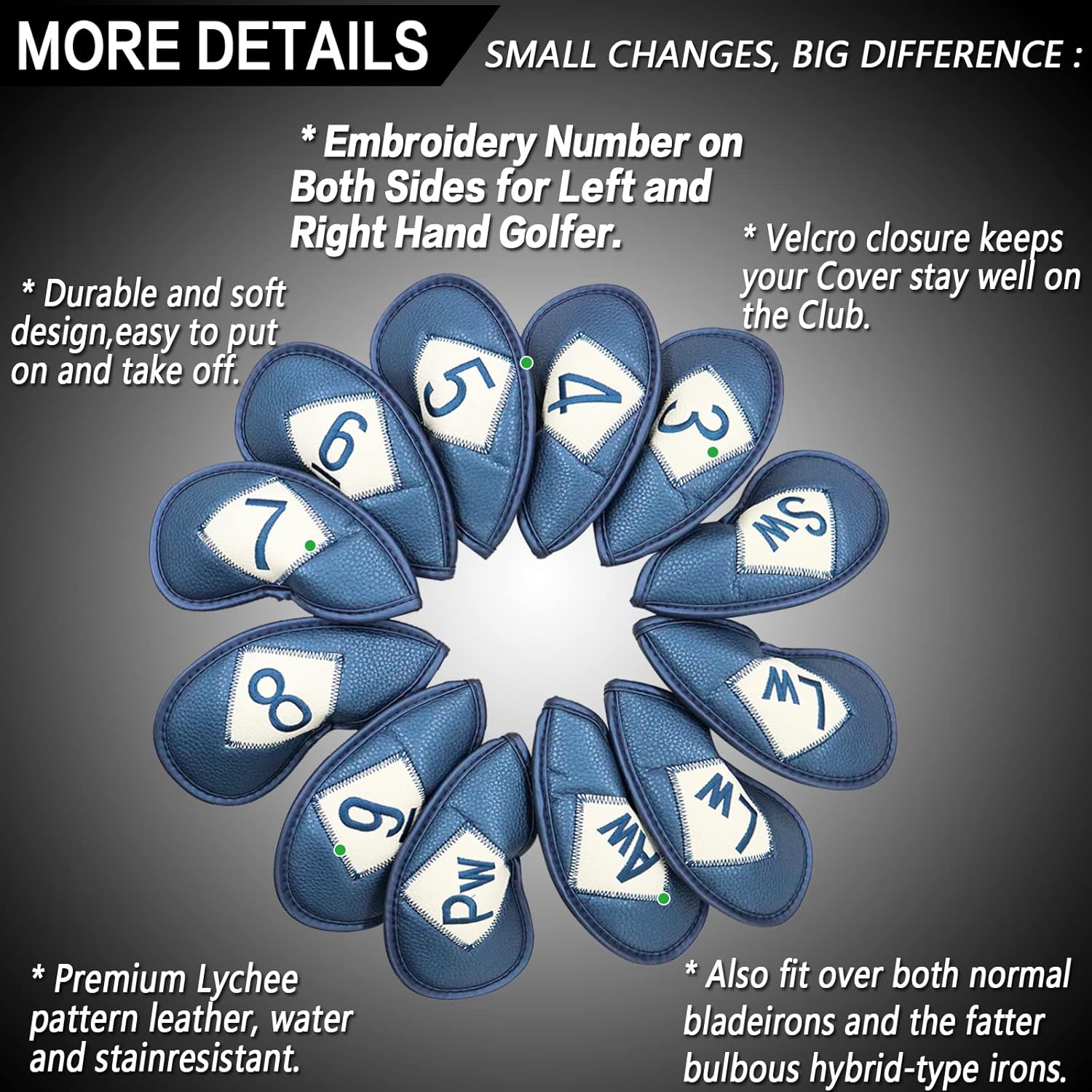 - Keep Your Irons Safety Anywhere: These Premium Golf Head Covers are a Must-have for Every Golfer who Values Protection and Style. Made from High-quality Synthetic Leather, They’re Water-resistant and Provide a Snug Club Fit to Shield Your Irons from Scratches, Dings, and Wear. Designed for Both Daily Play and Travel Convenience, They Add Sleek Aesthetic Appeal to Your Golf Bag Organization.