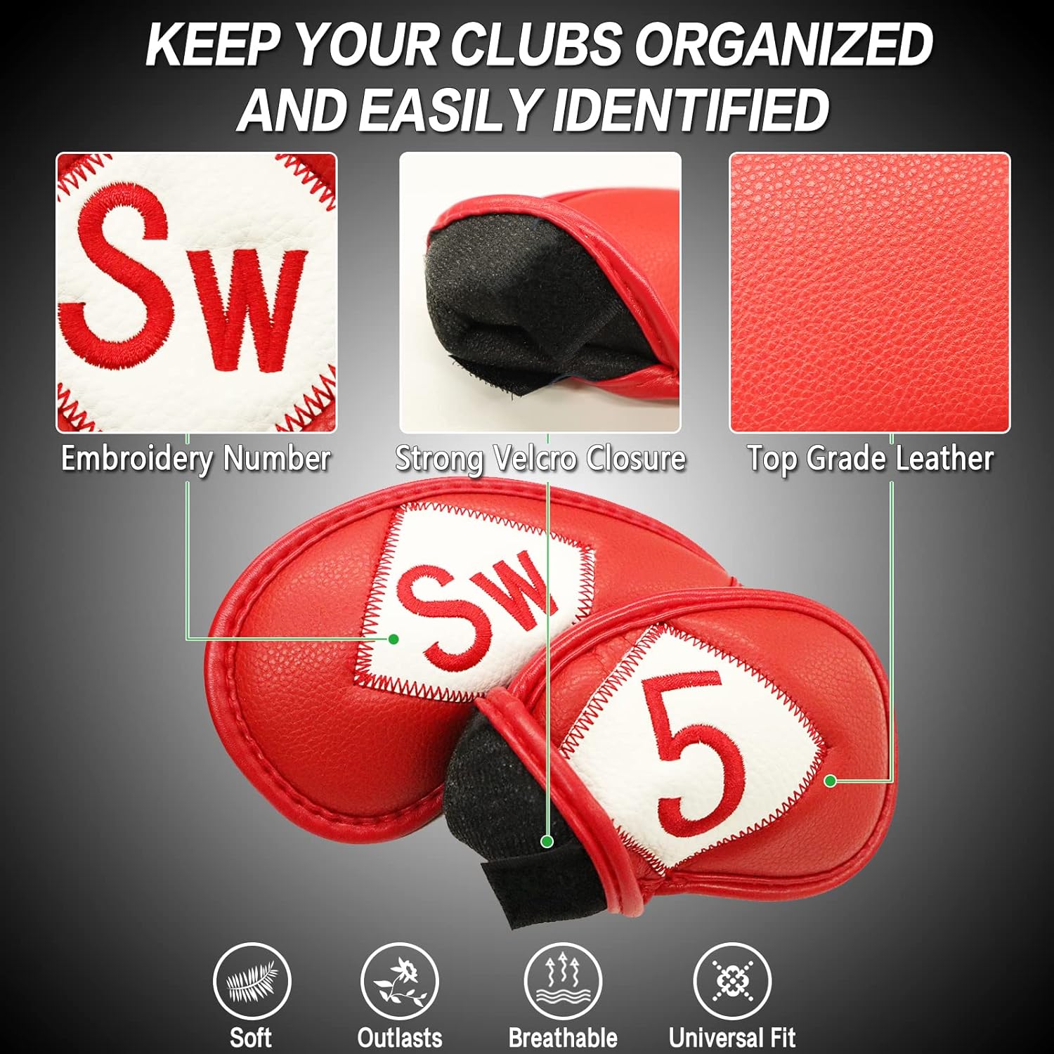 - Keep Your Irons Safety Anywhere: These Premium Golf Head Covers are a Must-have for Every Golfer who Values Protection and Style. Made from High-quality Synthetic Leather, They’re Water-resistant and Provide a Snug Club Fit to Shield Your Irons from Scratches, Dings, and Wear. Designed for Both Daily Play and Travel Convenience, They Add Sleek Aesthetic Appeal to Your Golf Bag Organization.