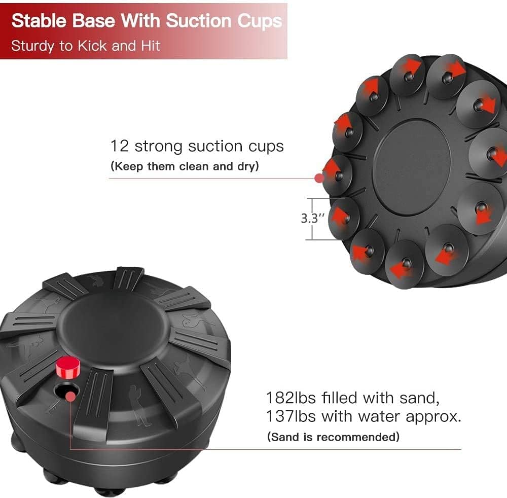 - High-quality material: Stainless steel tube stand is encased in multi-layer construction: 2mm thickened PU leather striking surface, high-density EPE foam, eco-friendly fabric buffer. Tear-resistant, fast rebound, is sure to withstand long-term onslaught of kicks and punches