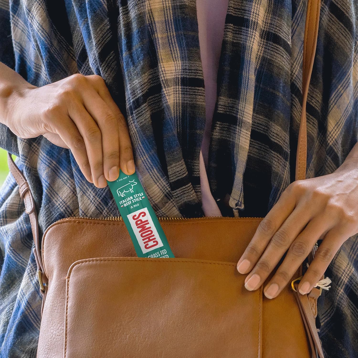 Chomps Grass-Fed and Finished Italian Beef Jerky Snack Sticks 10-Pack - Keto, Paleo, Whole30, 10g Lean Meat Protein, Gluten-Free, Zero Sugar Food, Non-GMO