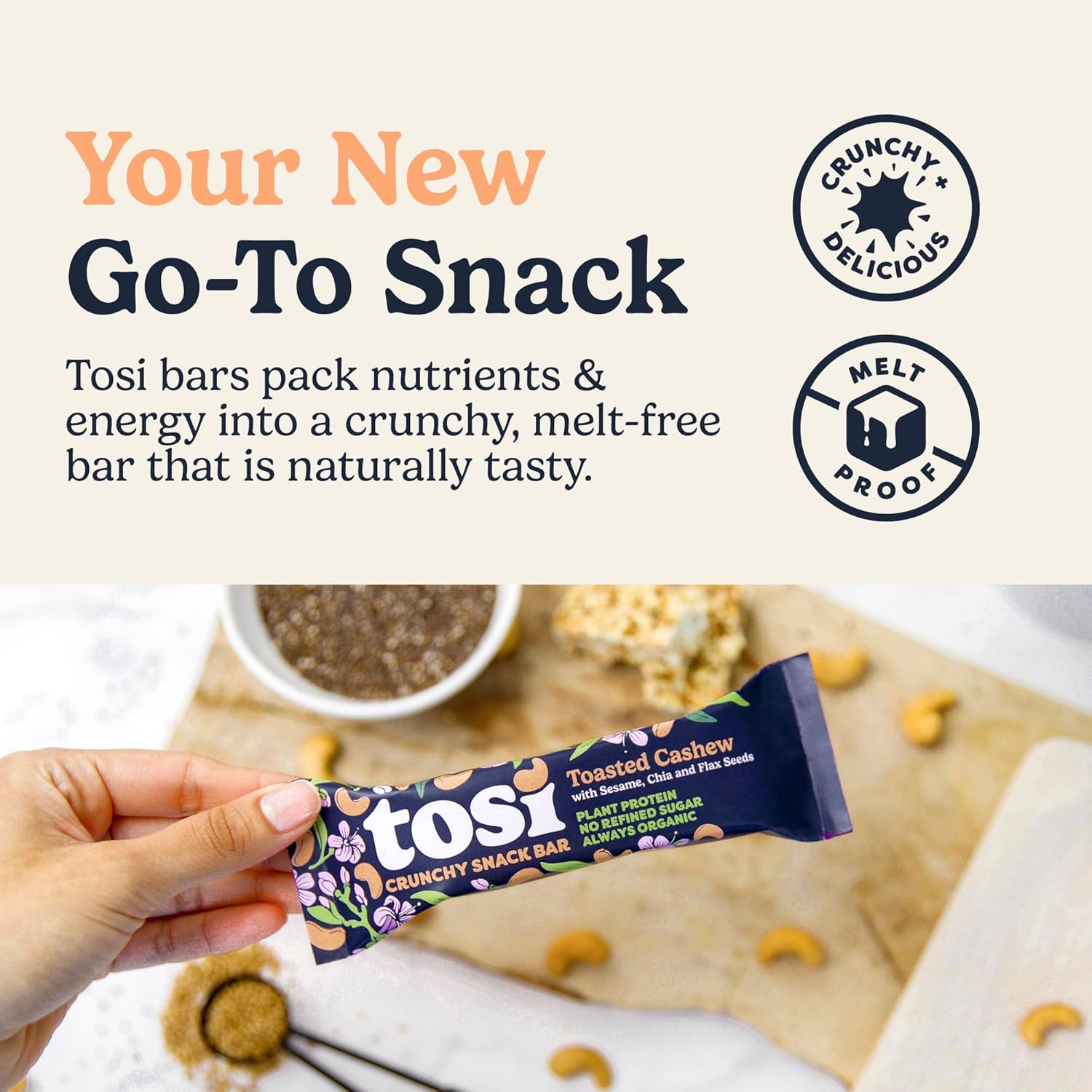 - CRUNCHY & DELICIOUS: Unique crunchy bite thats super tasty and simply satisfying. Nothing eats like a Tosi. Take a bite of our nut bars and youll experience what makes us different!