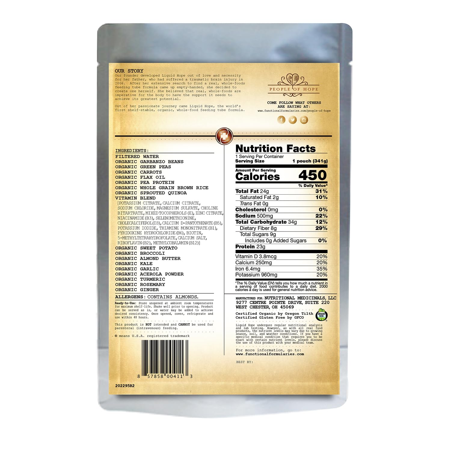 Functional Formularies Liquid Hope Organic Tube Feeding Formula And Nutritional Meal Replacement Supplement, 12 Oz Pouch, Pack of 24