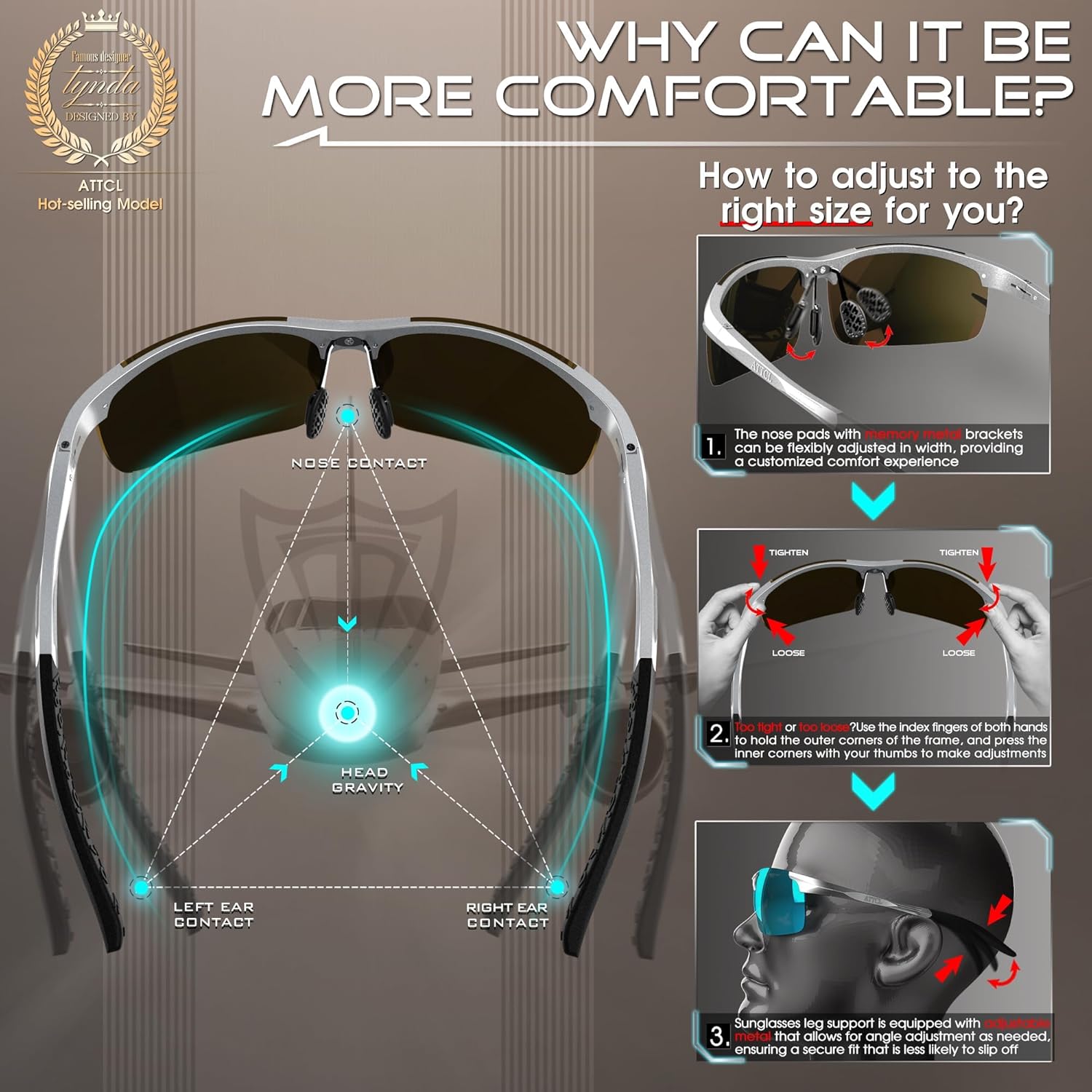ATTCL Men's Sports Polarized Sunglasses Men for Driving running Fishing Golf - UV Protection Sun glasses Metal Frame