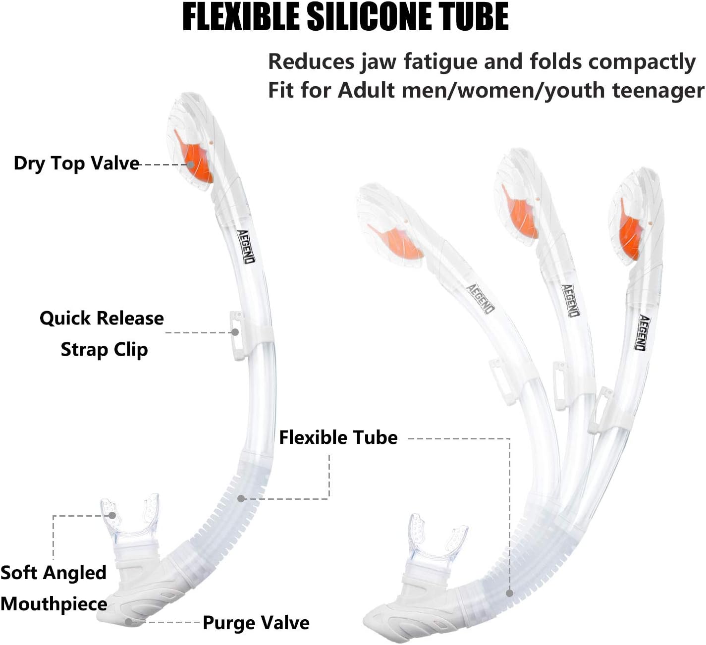 Aegend Dry Snorkel, Dive Mask Easy-Breath Free Diving Snorkel for Snorkeling Scuba Diving Freediving Swimming, with Top Dry Valve and Food-Grade Silicone Mouthpiece
