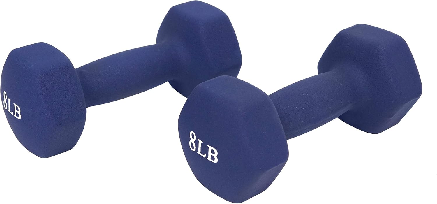 Sunny Health & Fitness Neoprene Coated Hex Shaped Dumbbell Non-Slip Fitness Weights for Home Gym Exercise, Full Body Workout Strength Building, Weight Loss, Sold in Pairs - Sizes - 2LB, 5LB, 8LB, 10LB