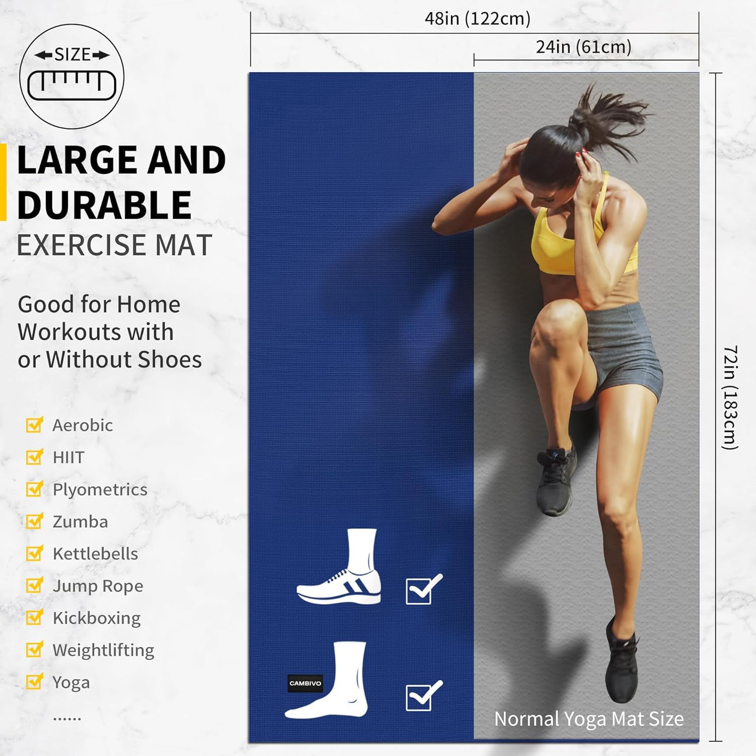 CAMBIVO Large Exercise Mat for Home Workout, 8'x6'/7'x5'/6'x4' (7 mm) Extra Thick Exercise Mat for Home Gym, Shoe-Friendly, Non-Slip Gym Mat for Jump Rope, Weights, Cardio, Fitness