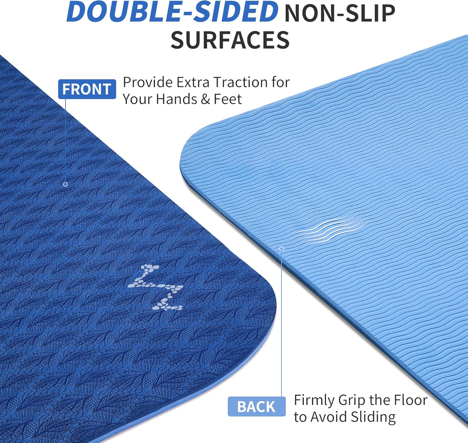 - Grippy Not Slippy: Our TPE Yoga Mat has double-sided non-slip surfaces so you can perform any movement with confidence; Wavy underside stops the mat from sliding on the floor; The subtly textured surface prevents hands and feet from slipping out of position so you can hold poses no matter how vigorous your practice gets