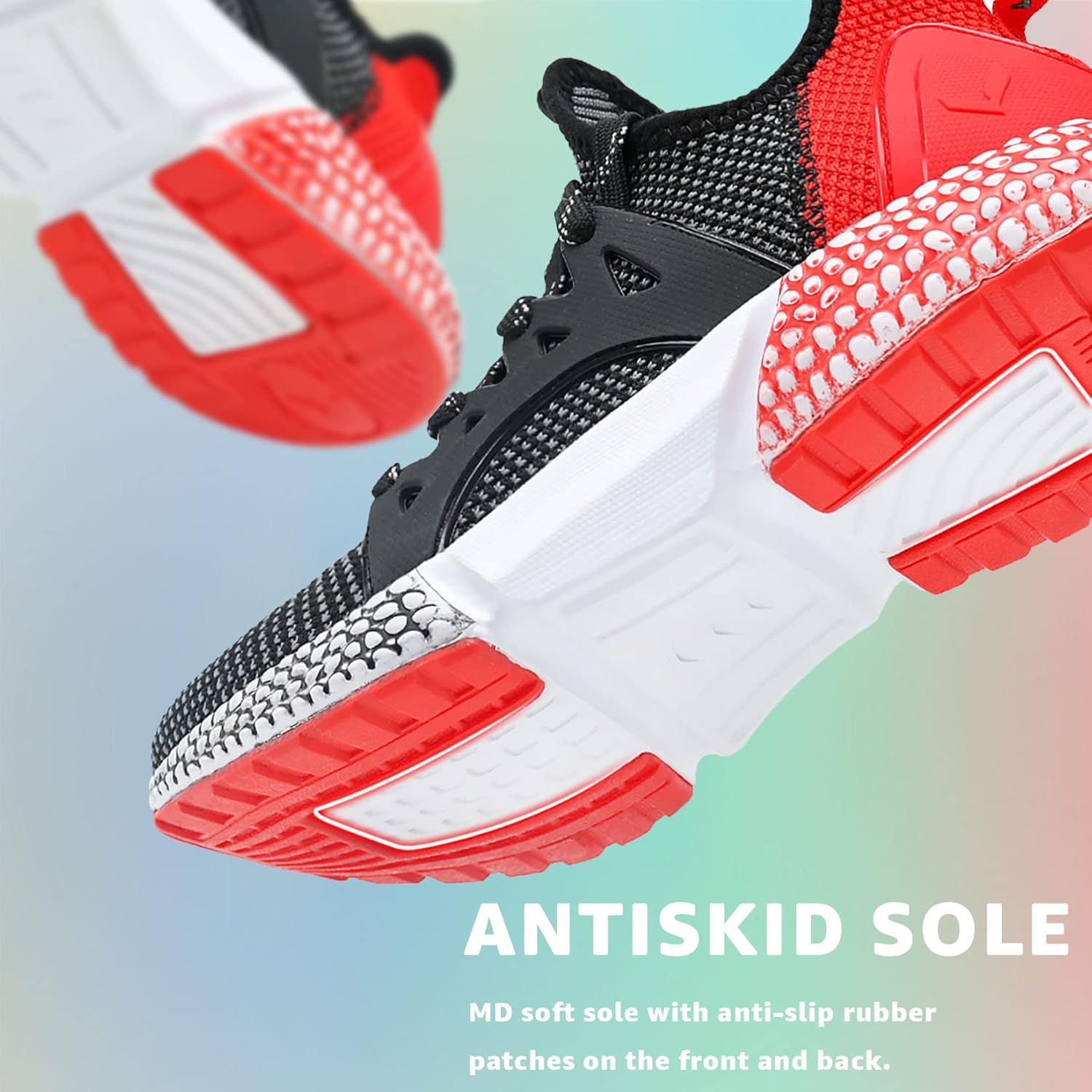 - 【Boys sneakers material】Boys sneakers has stretch mesh upper for a optimal breathable,lightweight feel boys shoes.Kids shoes boys quickly absorb sweat and drying friendly mesh uppers boys shoes,shoes for boys make feet cool and dry.Boys shoes don’t crease and easy to clean boys tennis shoes.