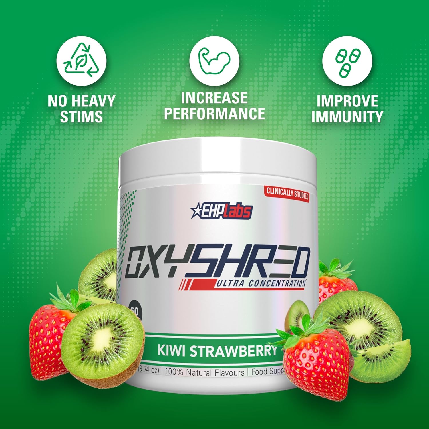 EHP Labs OxyShred Pre Workout Powder - Preworkout Powder with L Glutamine & Acetyl L Carnitine, Energy Boost Drink - Kiwi Strawberry, 60 Servings