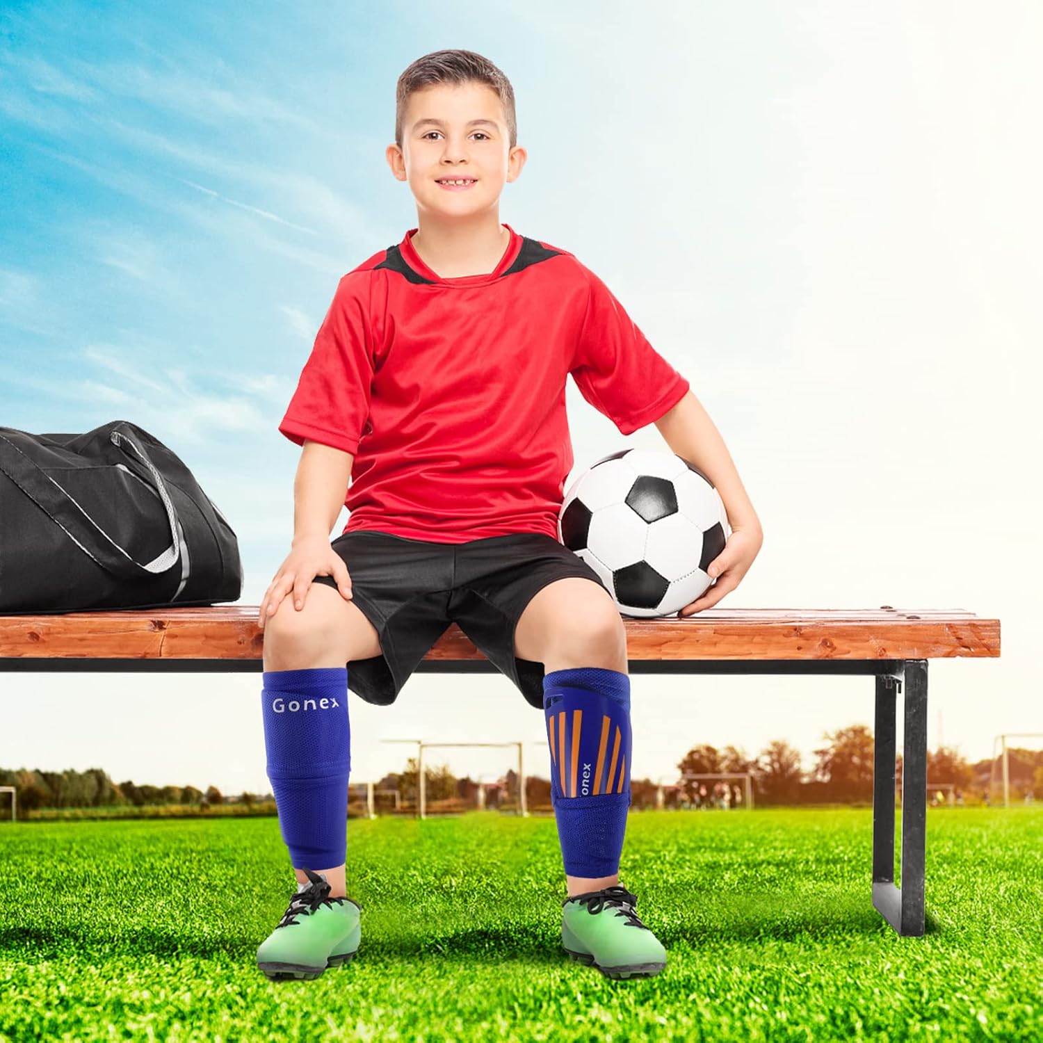 Gonex Soccer Shin Guards for Kids Adult, Youth Boys Girls Shin Guards Slip in Soccer Shin Pad Sleeves Canilleras for Football Games, EVA Cushion Protection Reduce Shocks & Injuries