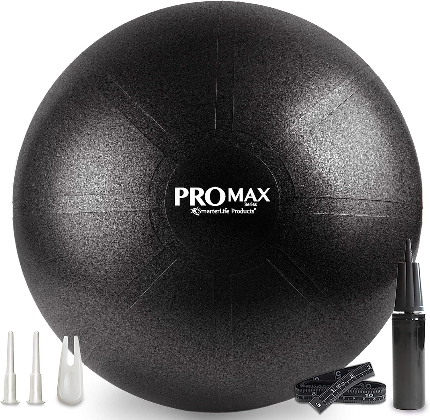 SmarterLife PRO MAX Workout Exercise Ball for Fitness, Yoga, Balance, Stability, or Birth Ball for Pregnancy and Labor, Great as Yoga Ball Chair for Office or Home Gym Equipment