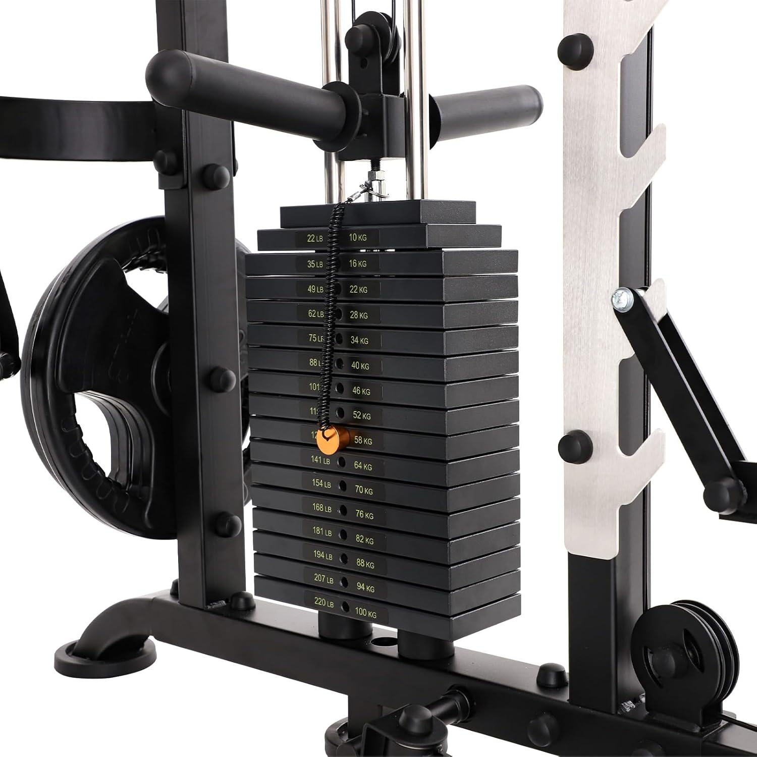 - Weight Capacity: Supports up to 1,000 lbs Capacity with dual 200 lb weight stacks and cables rated for 2,000 lbs, ideal for heavy-duty squats, presses, deadlifts, and more.