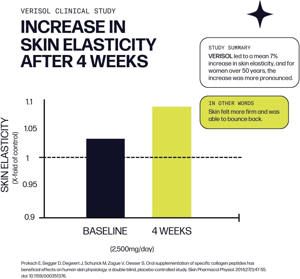 - CONTAINS CLINICALLY PROVEN VERISOL COLLAGEN β Each serving of Sparkle Wellness Skin Boost contains 2,500 mg of VERISOL Bioactive Collagen Peptides and 66 mg of vitamin C