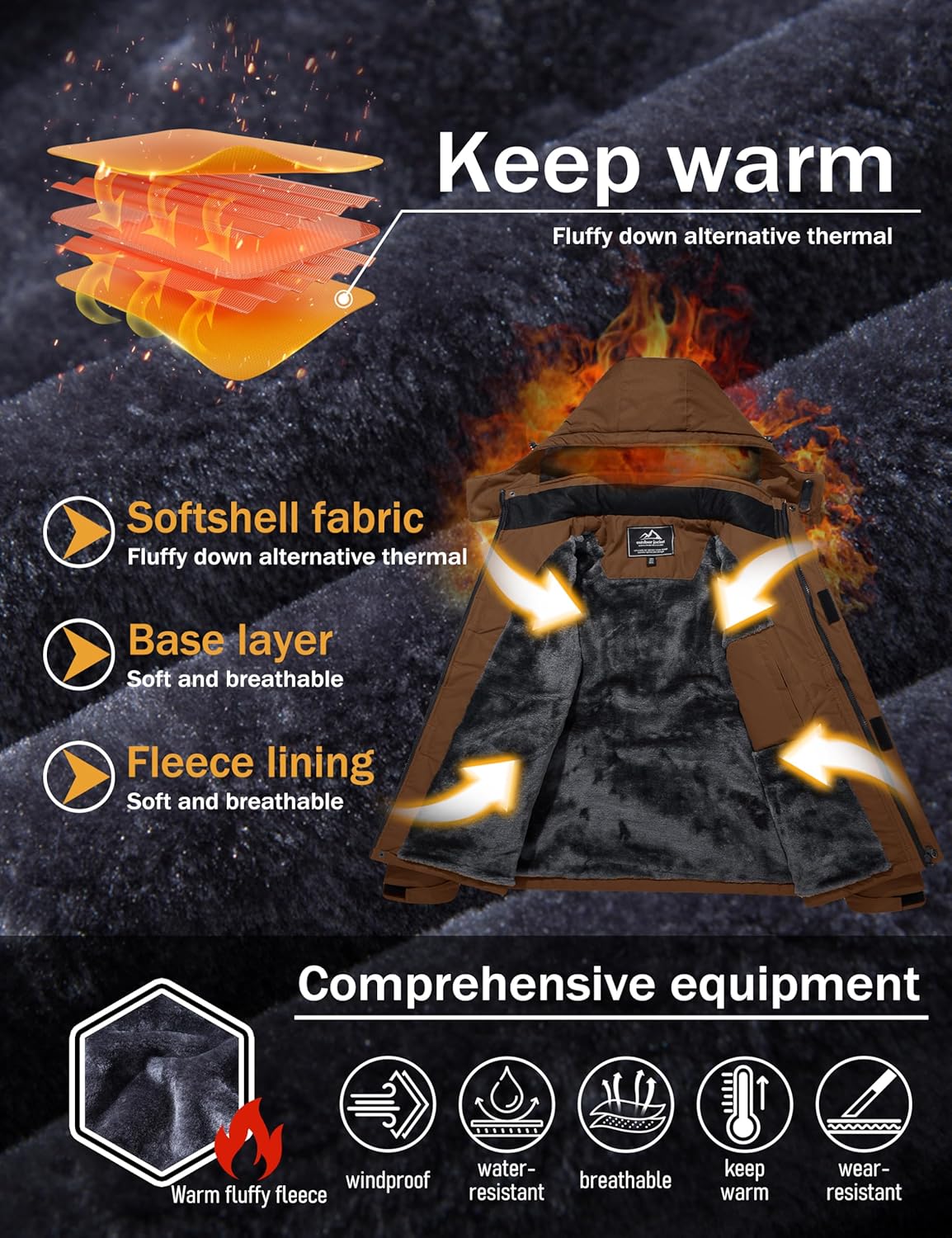 • Fleece Lining: Windproof Warm Jacket Coat With Thermal Fleece Lining to Keep You Warm in Cold Weather.