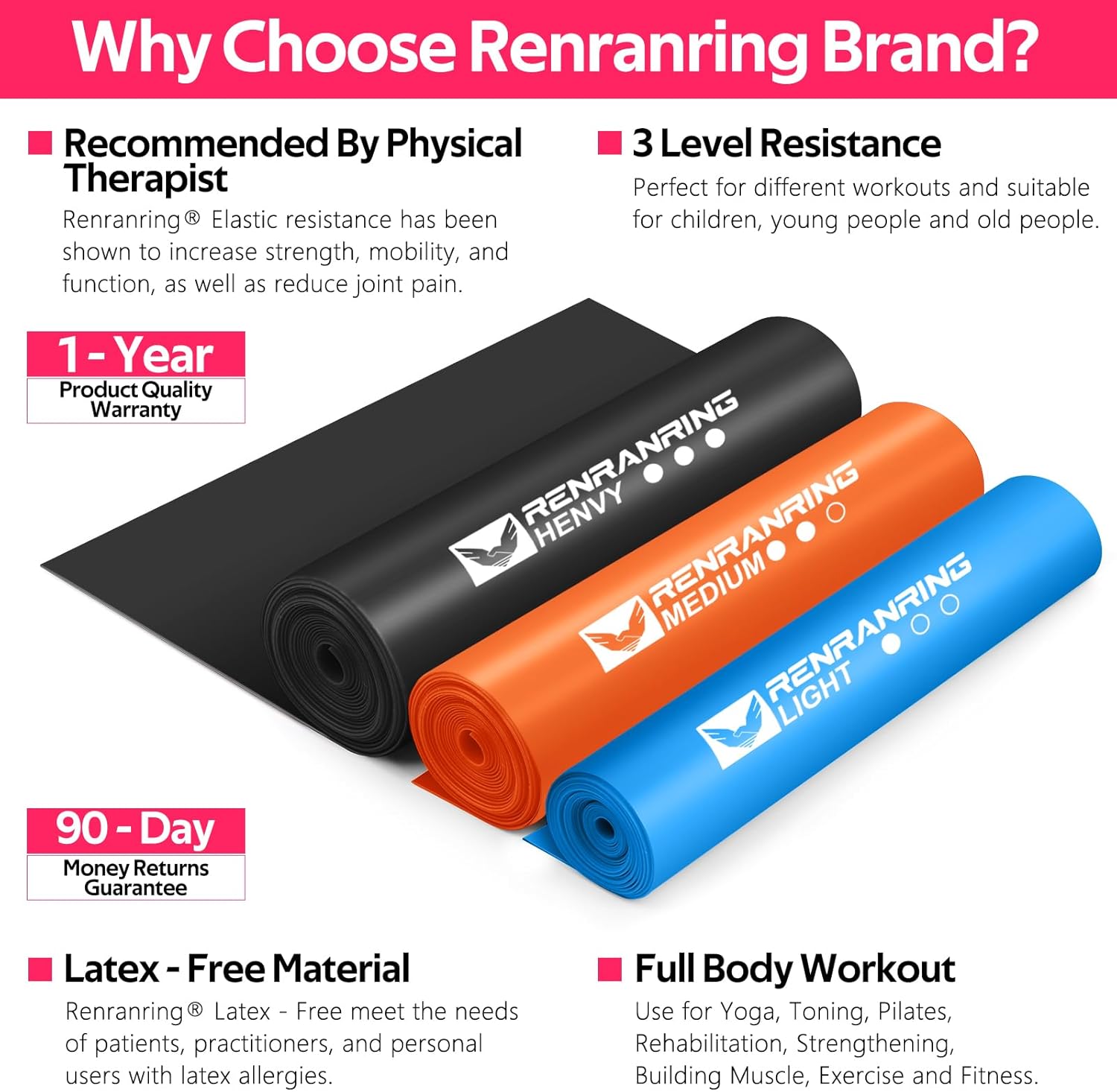 Resistance Bands for Working Out, Exercise Bands for Physical Therapy, Stretch, Recovery, Pilates, Rehab, Strength Training and Yoga Starter Set