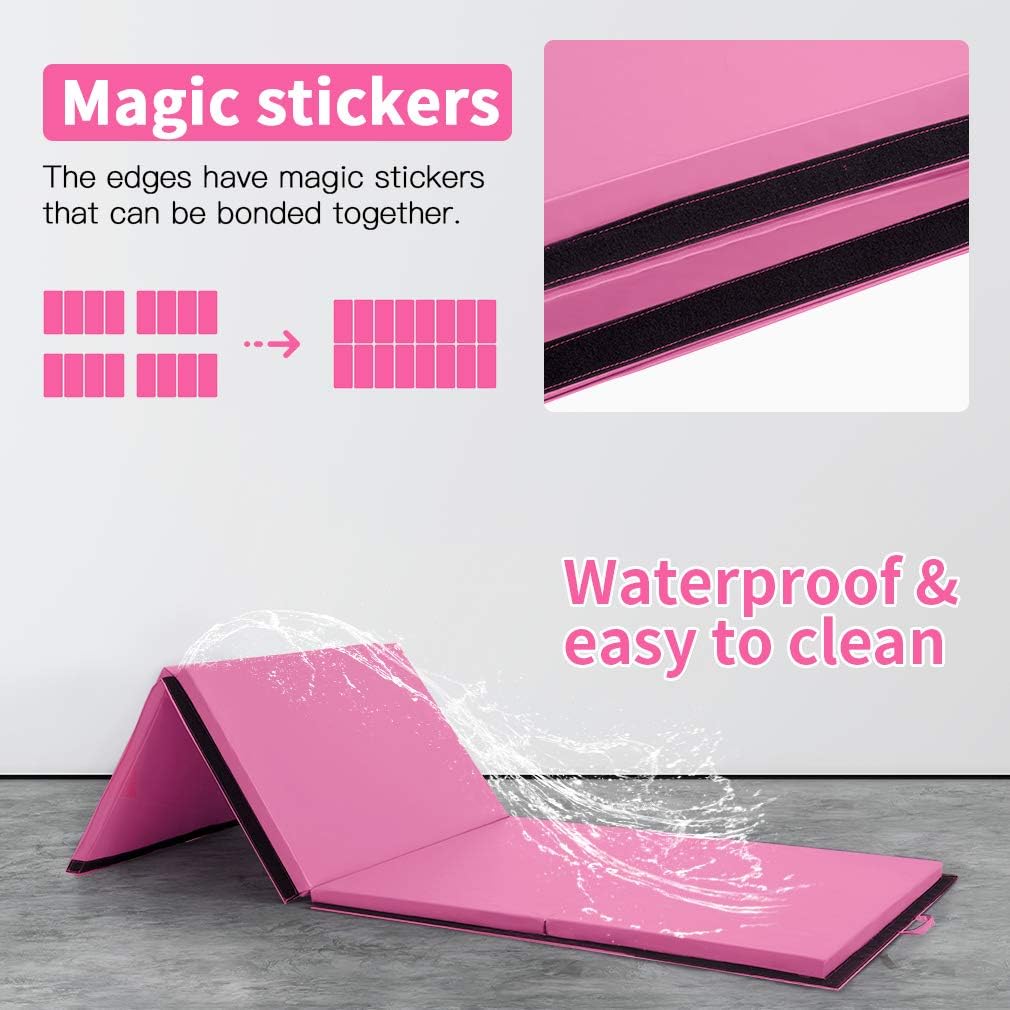 Gymnastics Tumbling Mats Portable Gymnastics Mat Foldable Tumbling Mat 2'x6'/4'x8' PU Leather Exercise Mat Yoga Mat with Carrying Handles for home Workout outdoor Yoga Gymnastics