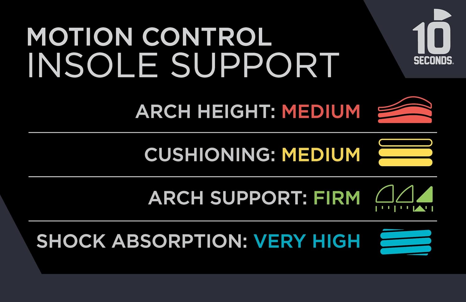 10 Seconds 3210 Motion Control Shoe Insoles, M 8, W 10