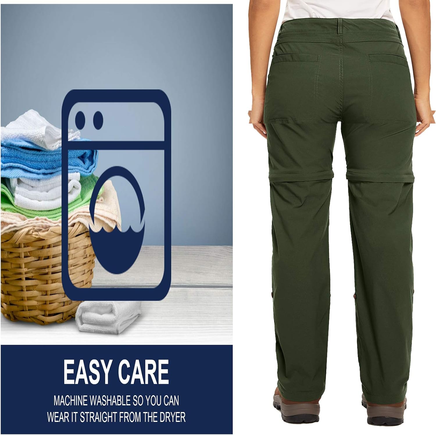 - Zip-off legs convert pants to shorts for versatility in changing weather
