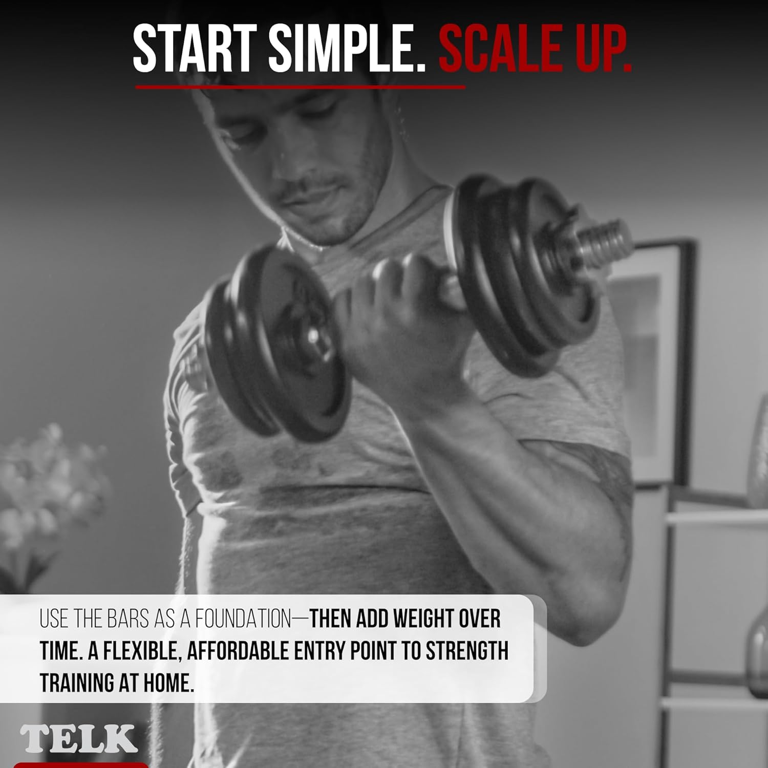 TELK – Adjustable Dumbbell Set – Home Gym Weight Set with Baked Enamel Cast Iron Plates – Space-Saving Free Weights for Strength Training