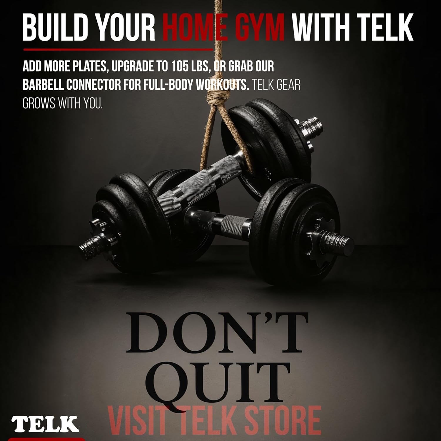 TELK – Adjustable Dumbbell Set – Home Gym Weight Set with Baked Enamel Cast Iron Plates – Space-Saving Free Weights for Strength Training