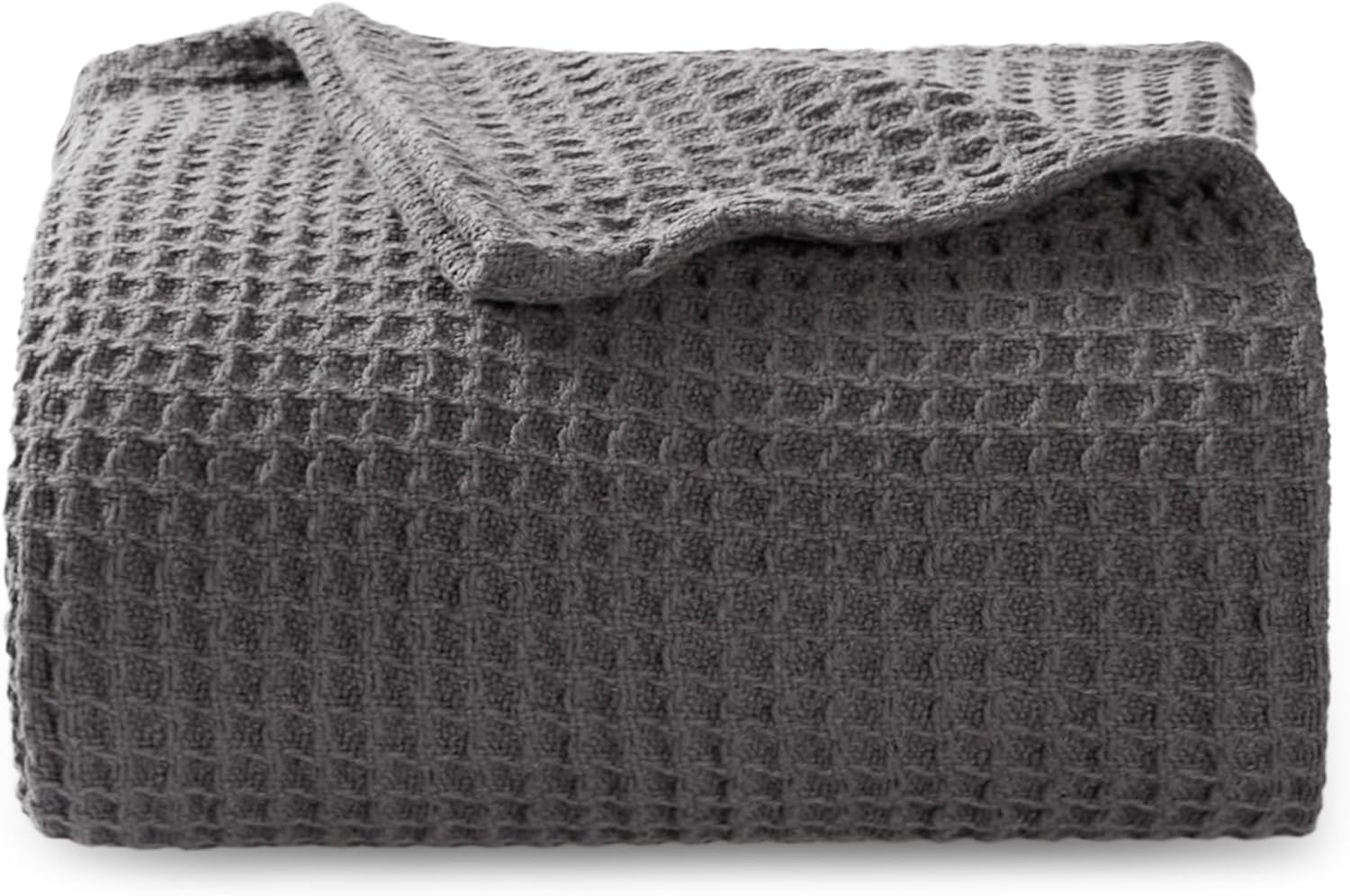 Bedsure 100% Cotton Blanket Twin XL Size for College Dorm - Breathable and Soft, Waffle Weave Twin Blanket for Summer, Dorm Room Essentials, Dark Grey, 66x90 inches