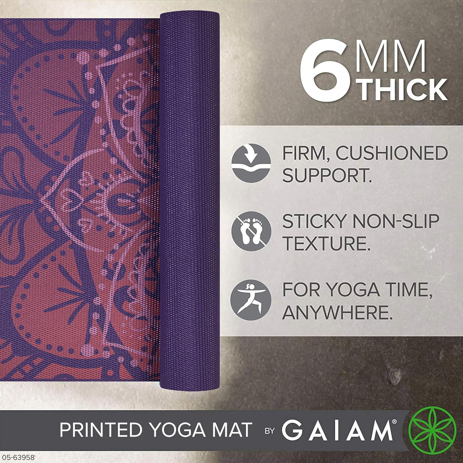 Gaiam Yoga Mat - Premium 6mm Print Extra Thick Non Slip Exercise & Fitness Mat for All Types of Yoga, Pilates & Floor Workouts (68"L x 24"W x 6mm Thick)
