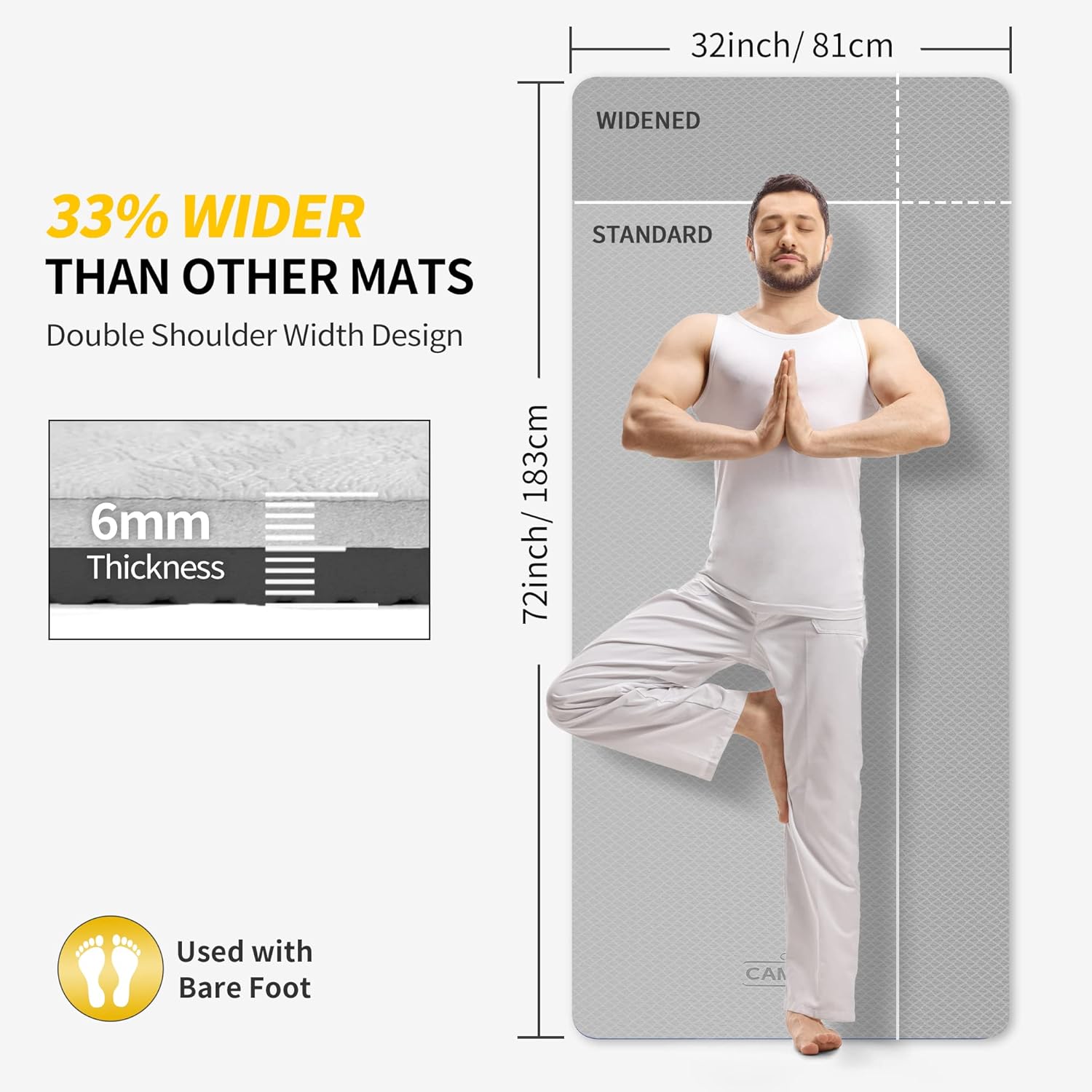 - Extra Long & Extra Wide: 72L x 32W, Don¡¯t have to worry about your legs or hands hang outside of the mat anymore. Our wide yoga mat is longer and wider than regular mats, providing more room to stretch and practice, you will never feel restricted or limited by the size of this mat