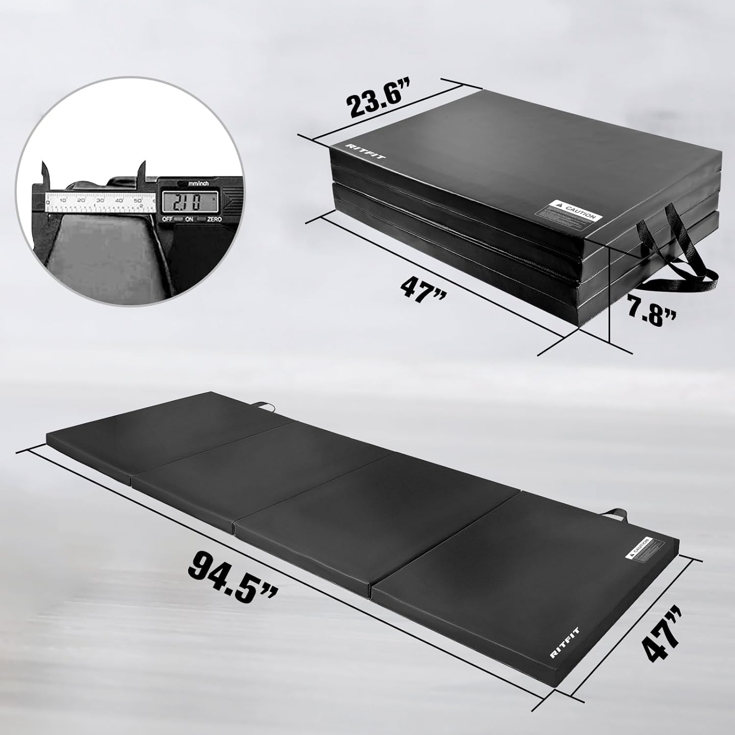 RitFit Upgraded Folding Exercise Mat, 2 Inch Thick Gymnastics Mat 3’x6’,4’x8’,4x10’,2'x8' with Carrying Handles for Yoga, MMA, Stretching, Core Workouts and Home Gym Protective Flooring