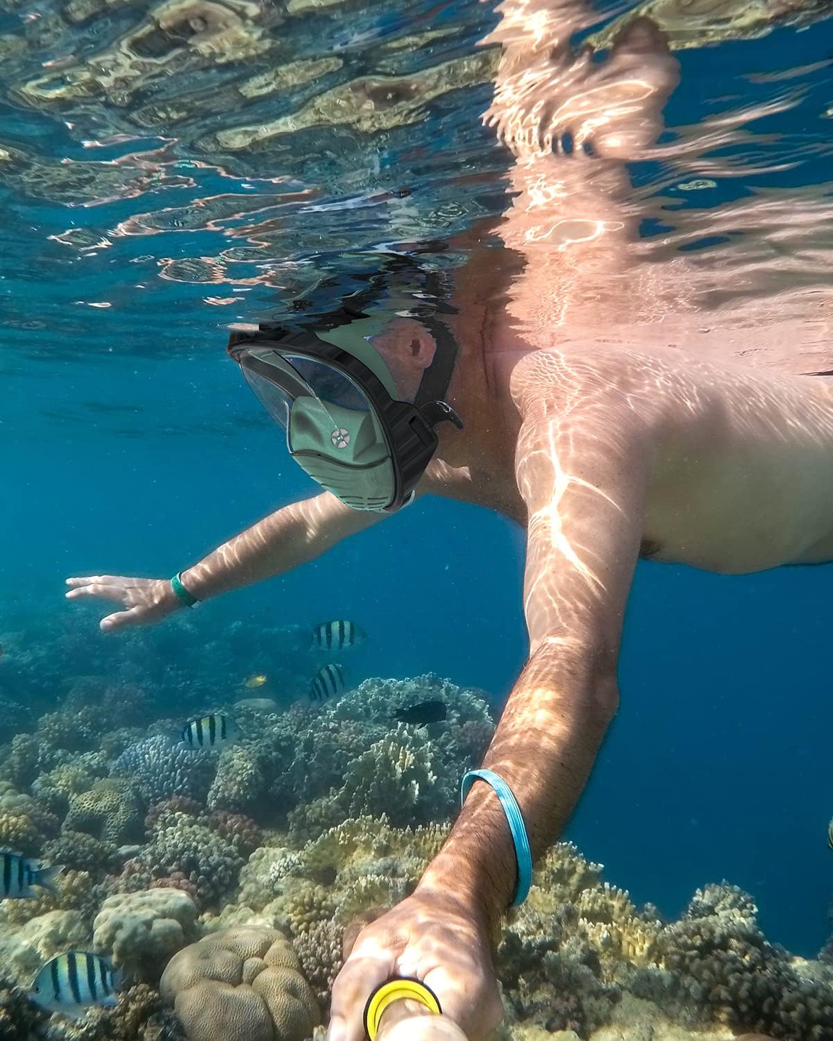 - 【Friendly Gift To Beginners】Adults snorkel mask full face is easier to use than traditional diving mask and more friendly to beginners and youth, the camera mount enables you to install Gopro and records the dreamlike underwater world, it’s a perfect present to family and friends; use this sports snorkel mask and enjoy unforgettable vacation.