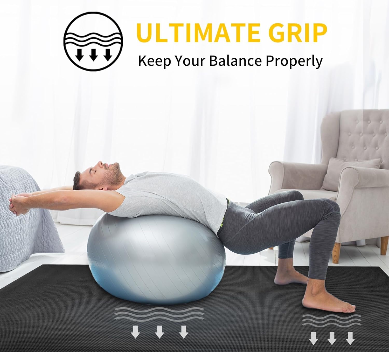 - Extra Cushioning and Comfort - 1/3" thick large yoga mat delivers shock-absorbing cushioning; the wide yoga mat supports arad comforts your spine, hips, knees, and elbows on hard floors; this thick exercise mat protects your floors and carpets from damage during exercise; it maintains good performance on various flooring in any room