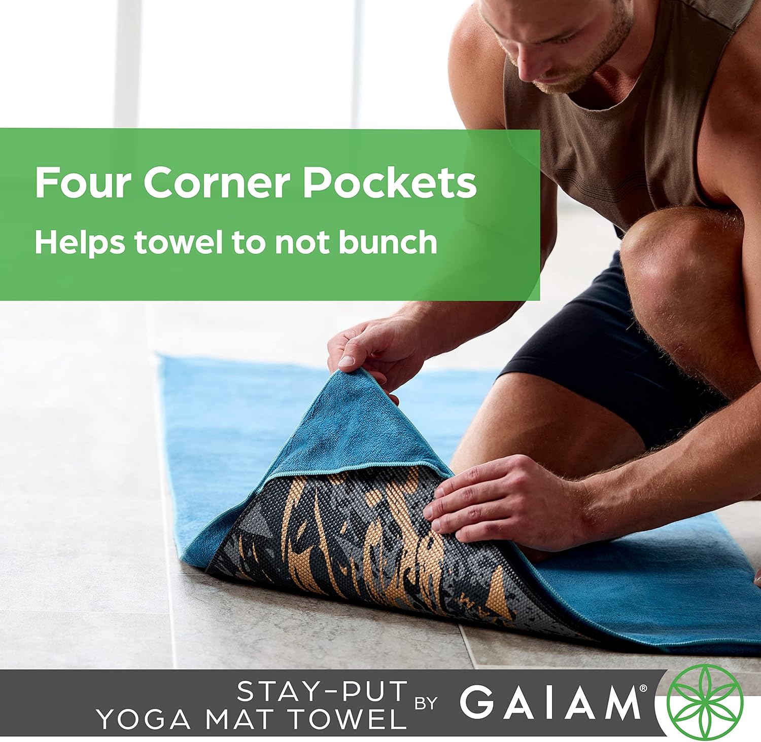 - STAY PUT DESIGN: Each corner of the yoga mat towel features pockets on the backside that fit over the 4 corners of the yoga mat for a tighter, more secure hold that helps to prevent bunching during practice