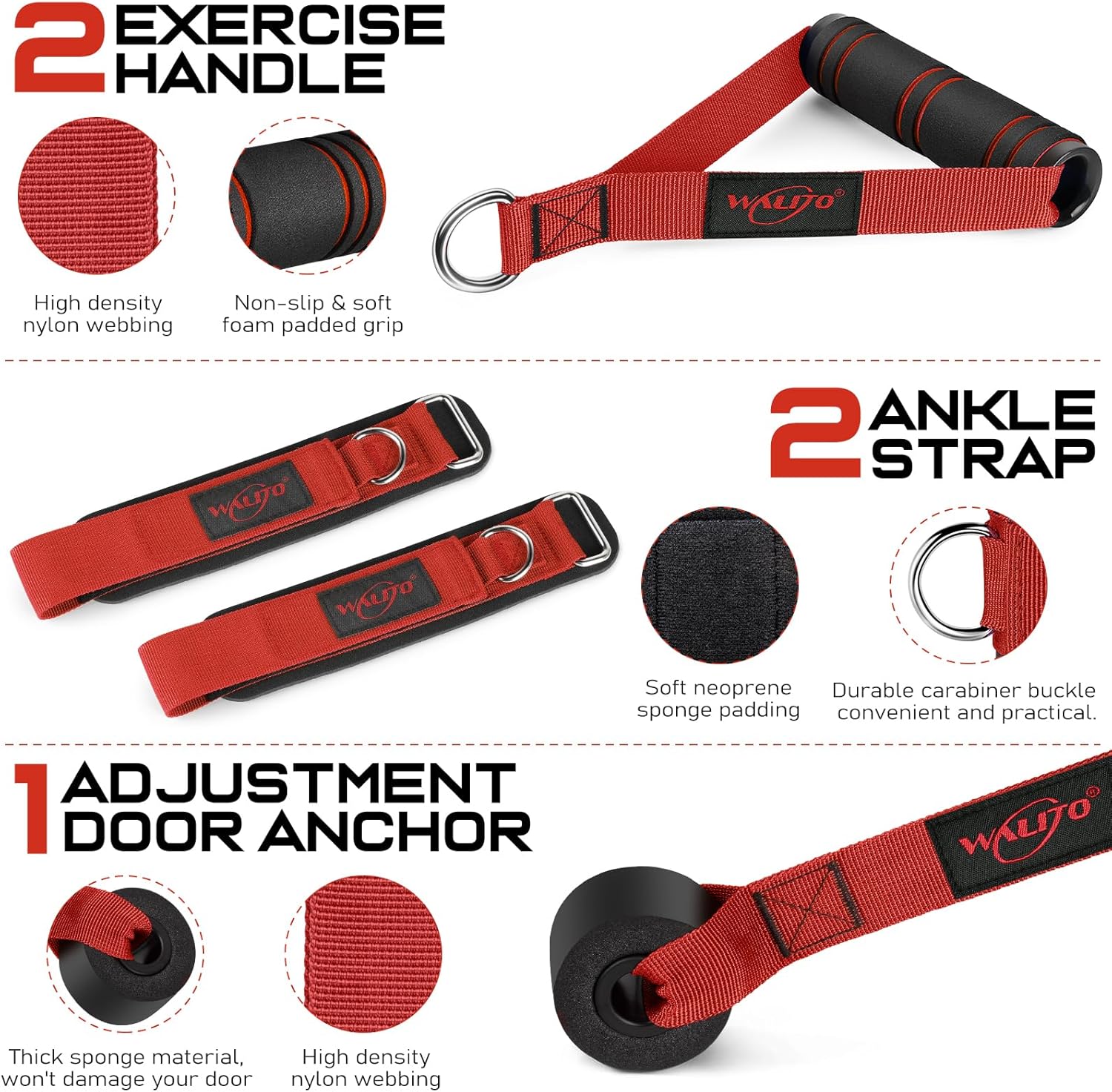 WALITO Resistance Bands Set - Exercise Bands with Handles, Door Anchor, Legs Ankle Straps, for Heavy Resistance Training, Physical Therapy, Muscle Training, Yoga, Home Workouts