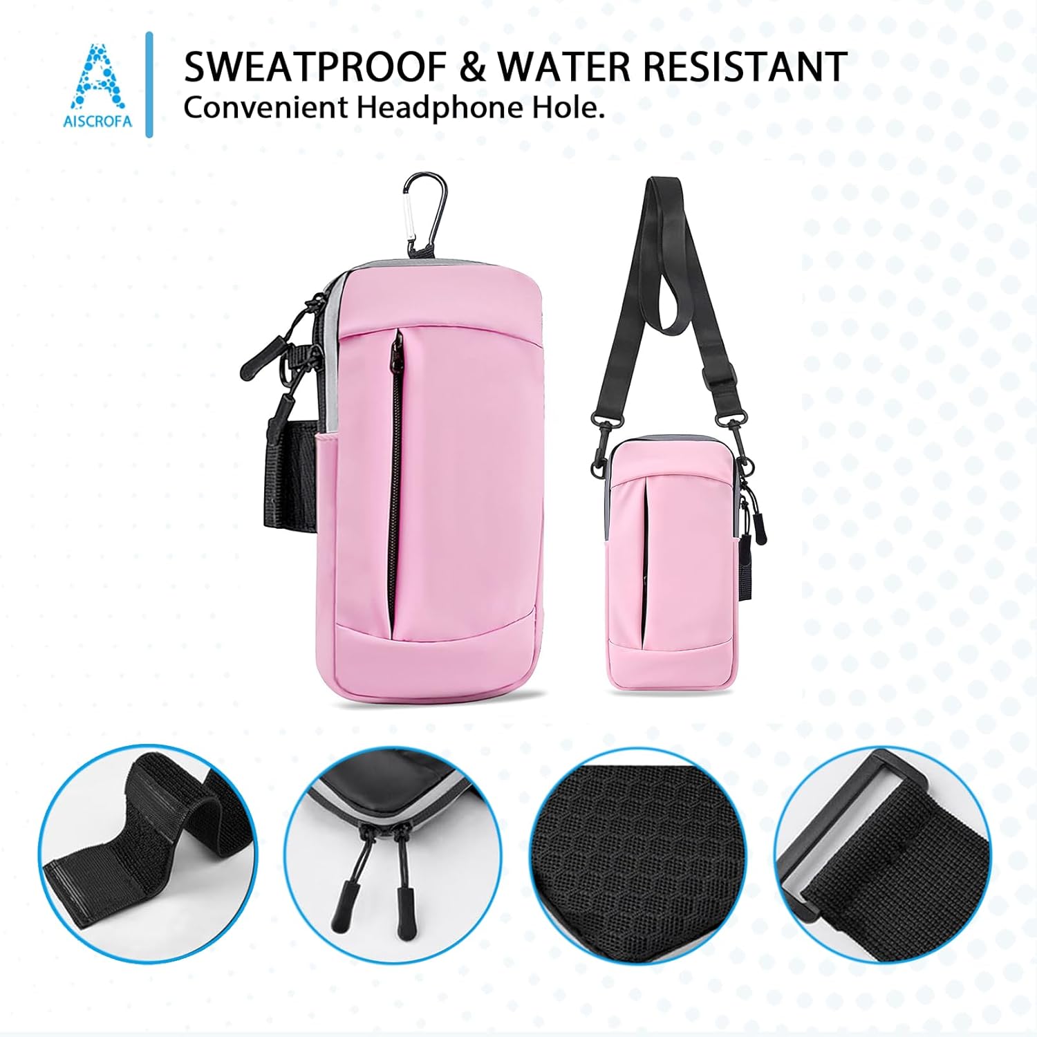 - 【SECURE PROTECTION And VERSATILE PLUS ARMBAND】This running zipper pouch with double deck and double zipper exercise pouch plus size design provides large and safe space for your cellphone as well as your house or car keys, ID/credit cards, cash, earphone, iPod, Mp3, passport, cable, facial tissue and other accessories whilst doing outdoor activities. Never worry about losing them. Also, headphone and charger cutouts allow convenient access to the phone for hands free and listening music.